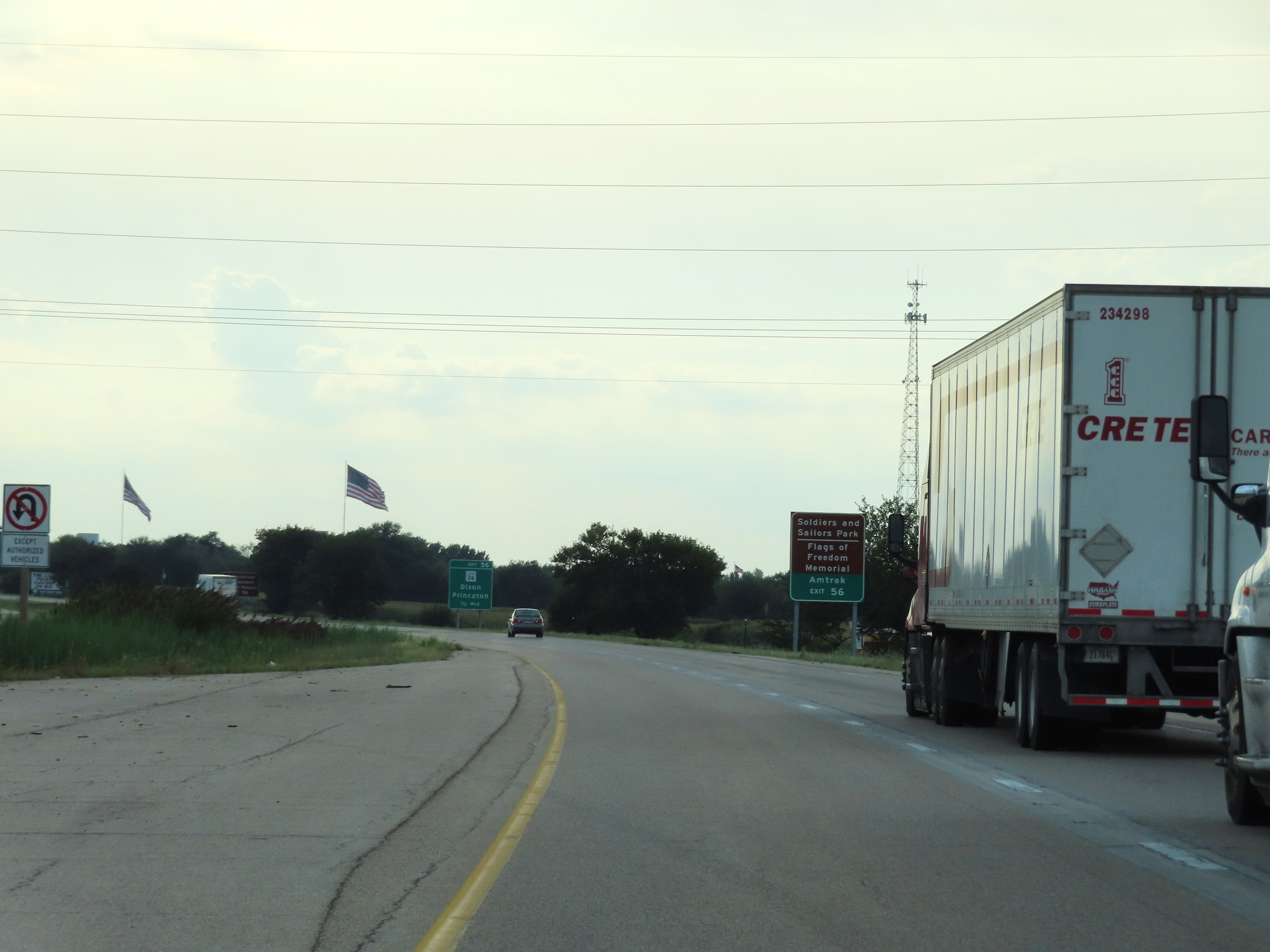Take Exit 56 to Soldiers and Sailors Park, the Flags of Freedom Memorial, and the Amtrak station. (Photo taken 8/19/22). |