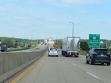 As Interstate 80 West reaches the peak of the Fred Schwengel Memorial Bridge over the Mississippi River, it crosses the state line into Iowa. (Photo taken 8/19/22). |