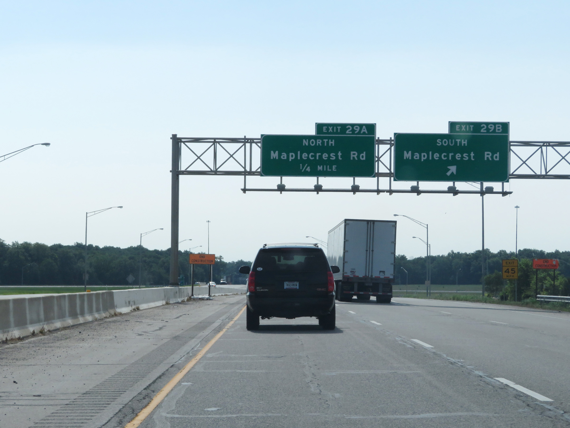 Interstate 469 Inner Loop (East) at Exit 29B: Maplecrest Rd South (Photo taken 7/19/17). |