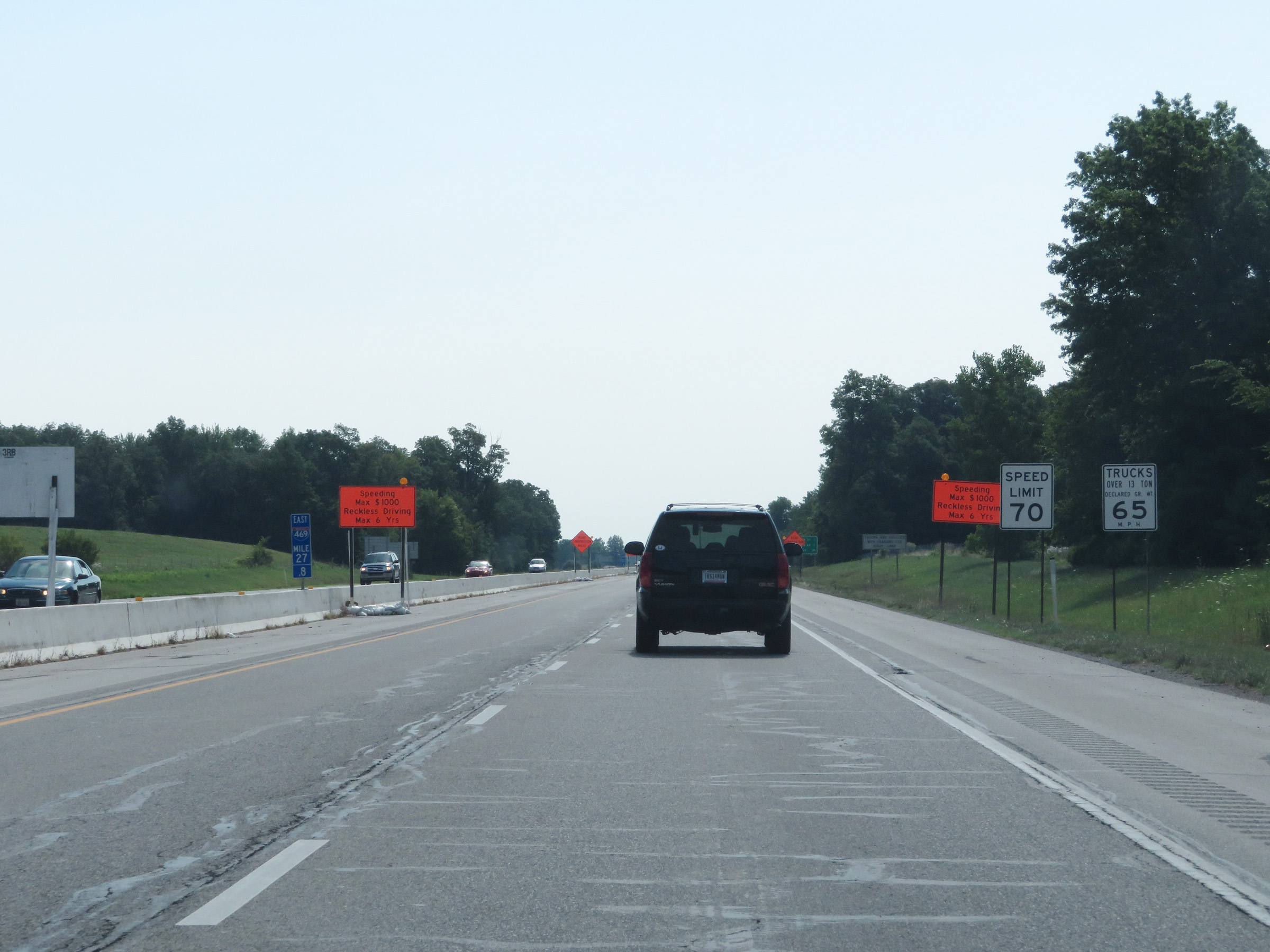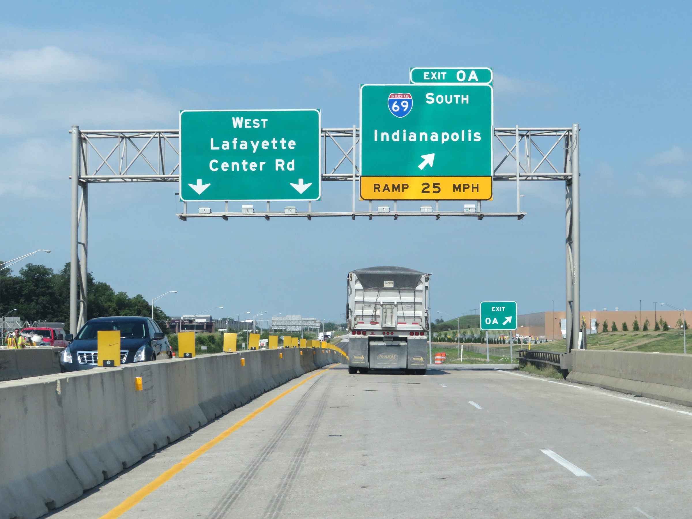 Interstate 469 Inner Loop (West) at Exit 1: Lafayette Center Rd East (Photo taken 7/19/17). |