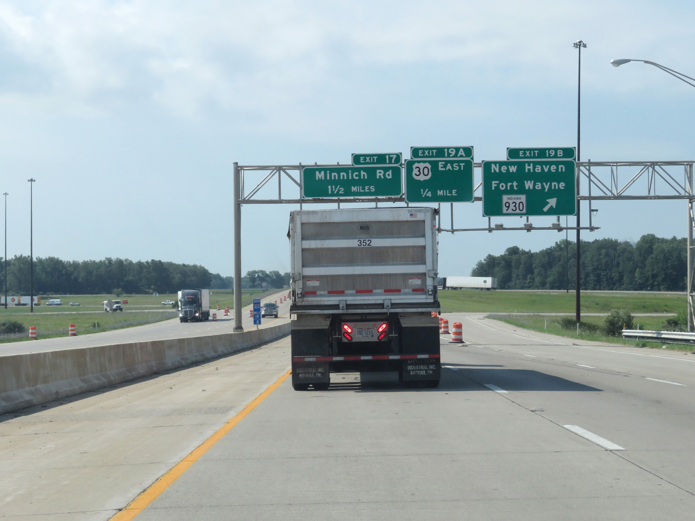 Interstate 469 Inner Loop (South) at Exit 19B: IN 930 - New Haven / Fort Wayne (Photo taken 7/19/17). |