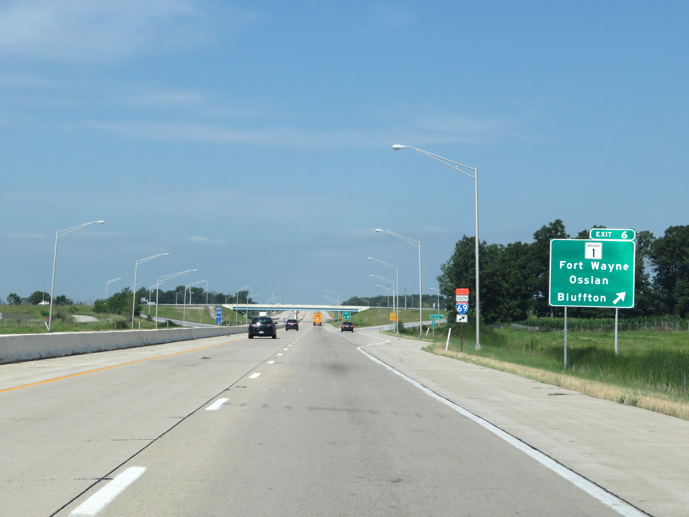 Interstate 469 Inner Loop (West) at Exit 6: IN 1 - Fort Wayne / Ossian / Bluffton (Photo taken 7/19/17). |