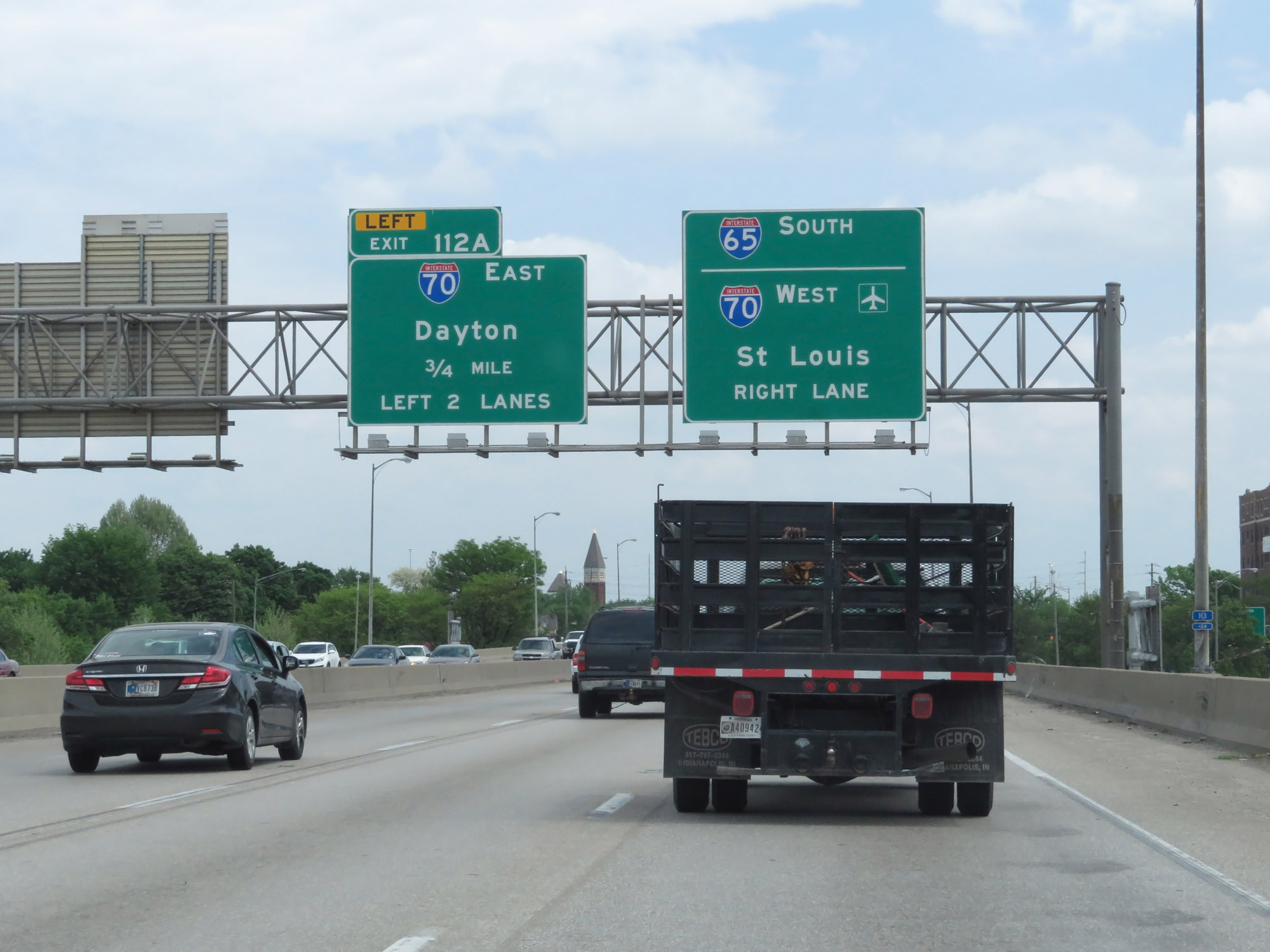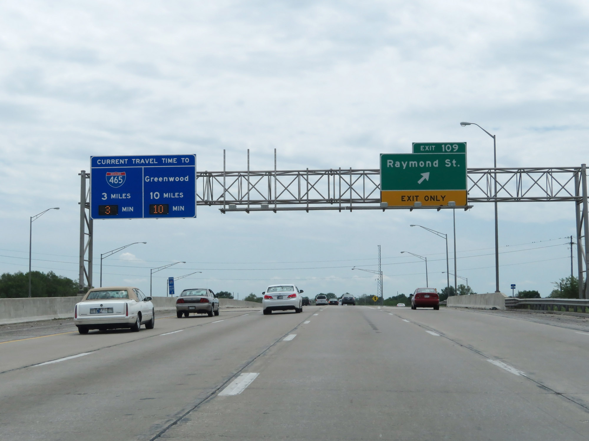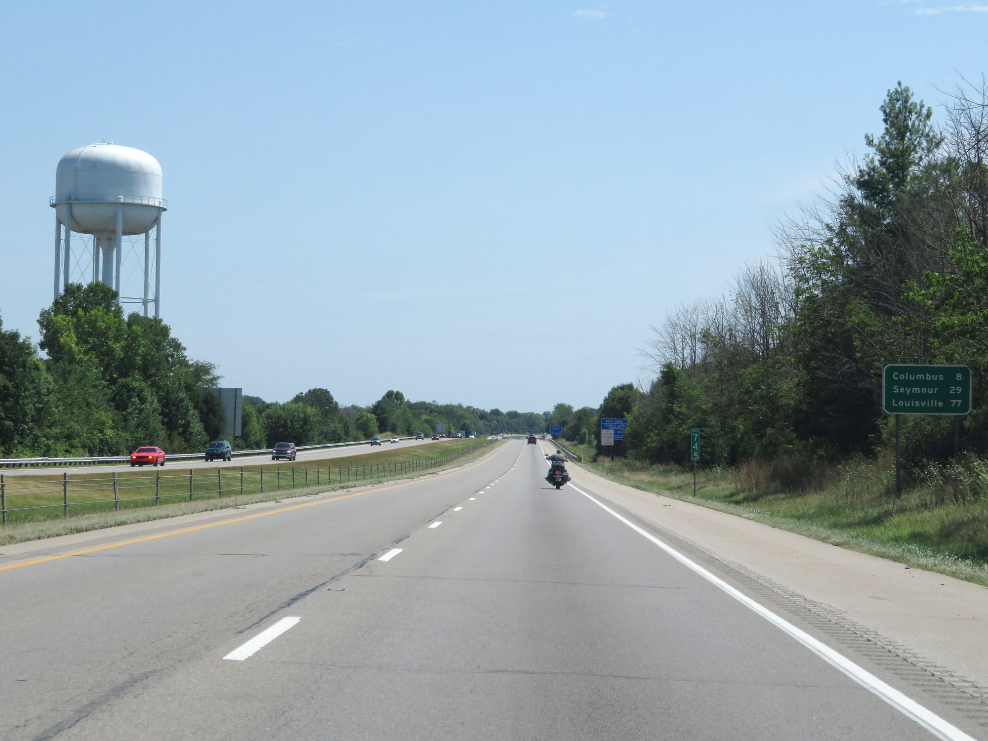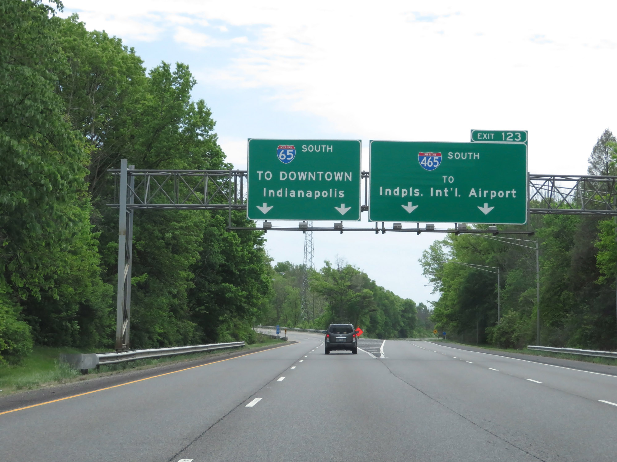 South of Exit 253, the speed limit increases to 70 mph for cars and 65 mph for trucks. These are the standard speed limits on most rural Interstate highways in Indiana. (Photo taken 7/18/17). |
