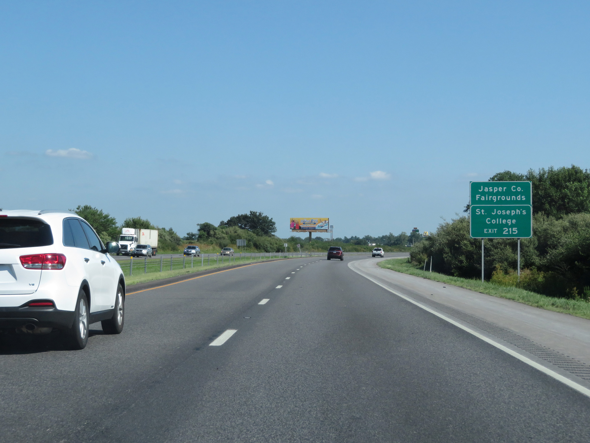 Take Exit 215 to the Jasper County Fairgrounds and St Joseph's College. (Photo taken 7/18/17). |