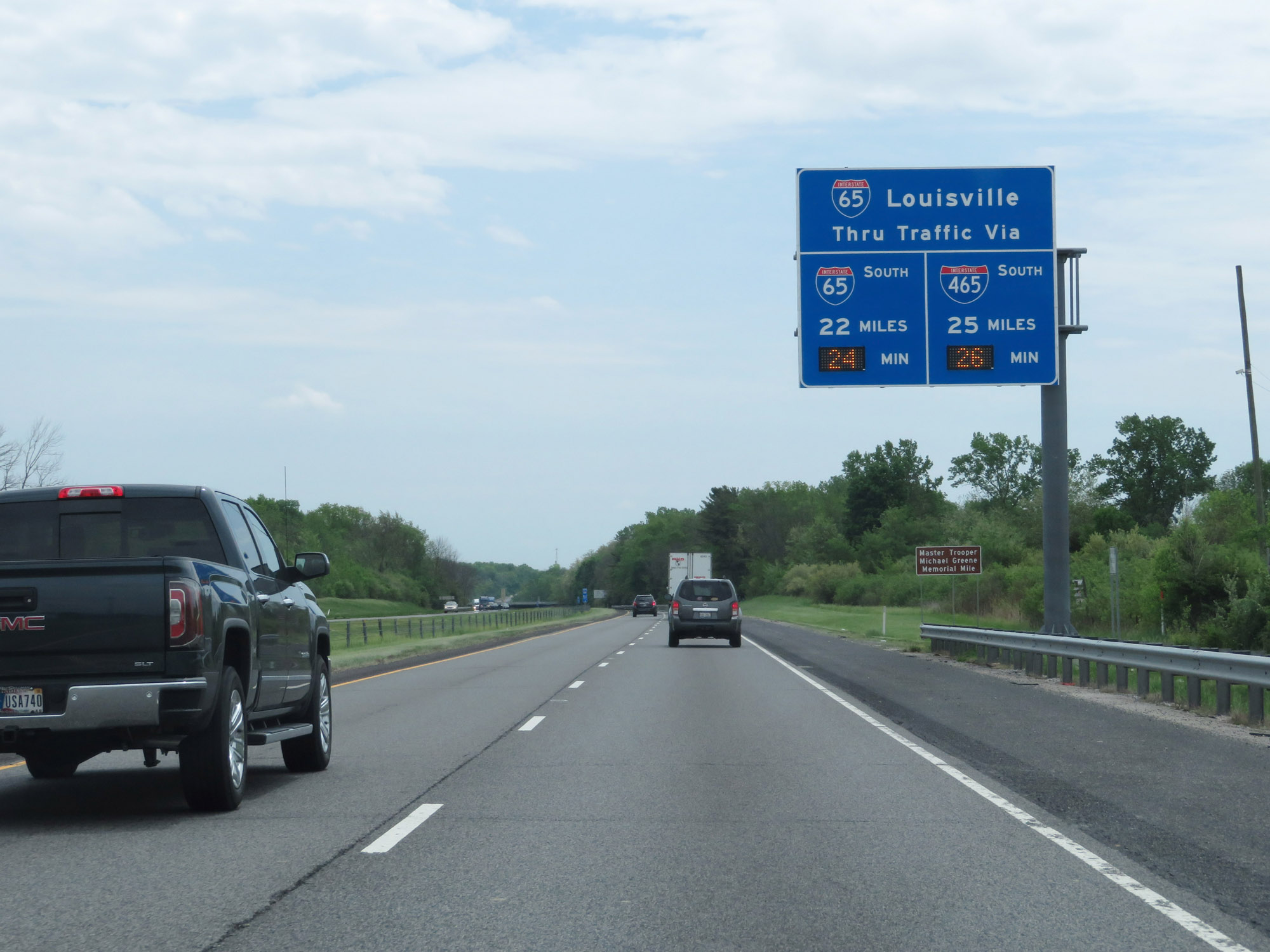 Interstate 65 South approaching Exit 175 - 1 mile. (Photo taken 7/18/17). |
