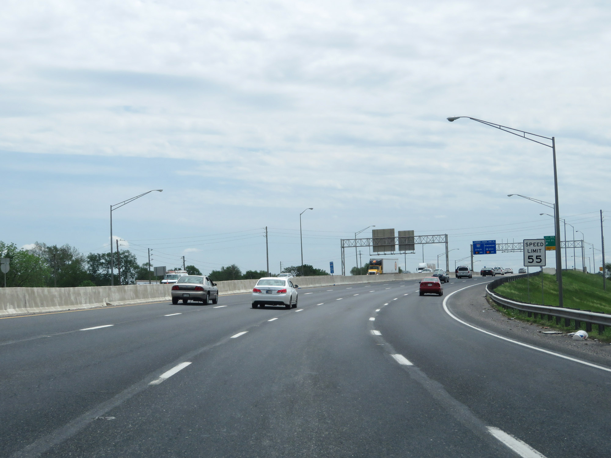 A mile from Exits 259A-B, the speed limit gets a slight bump up to 55 mph. (Photo taken 7/18/17). |