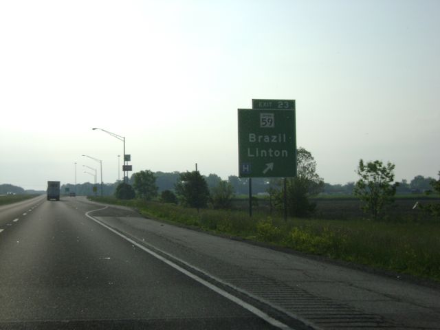 Interstate 70 East at Exit 23: IN 59 - Brazil / Linton (Photo taken 5/24/10). |