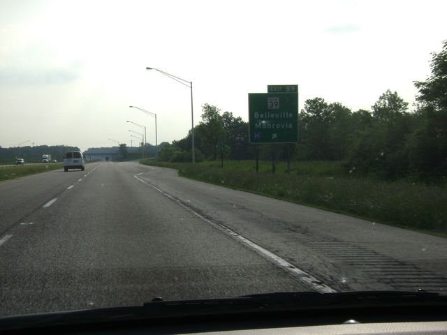 Interstate 70 East at Exit 59: IN 39 - Belleville / Monrovia (Photo taken 5/24/10). |