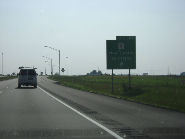 Interstate 70 East at Exit 123: IN 3 - New Castle / Spiceland (Photo taken 5/24/10). |