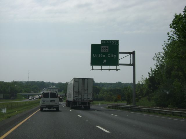Interstate 70 East at Exit 153: IN 227 - Union City (Photo taken 5/24/10). |