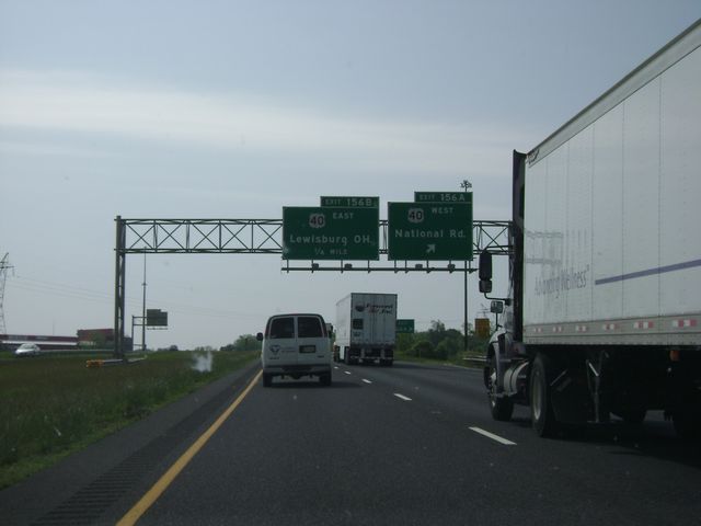 Interstate 70 East at Exit 156A: US 40 West - National Rd (Photo taken 5/24/10). |