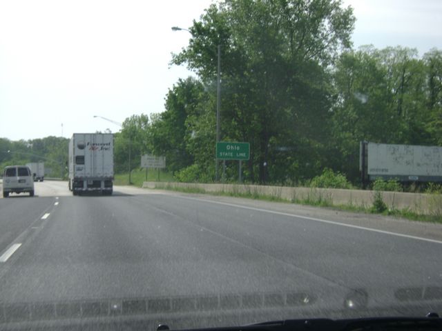 Sign indicating that you are about to cross the Ohio state line on Interstate 70 East. (Photo taken 5/24/10). |