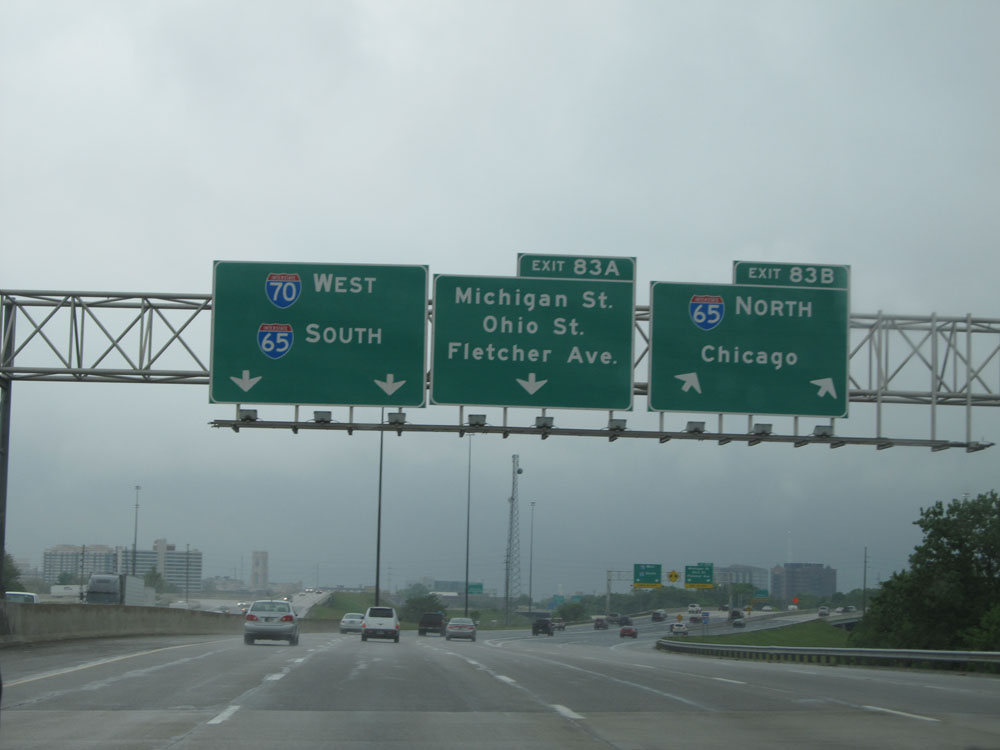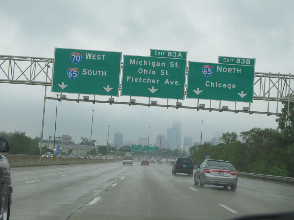Interstate 70 West at Exit 83B: Interstate 65 North - Chicago (Photo taken 5/16/15).