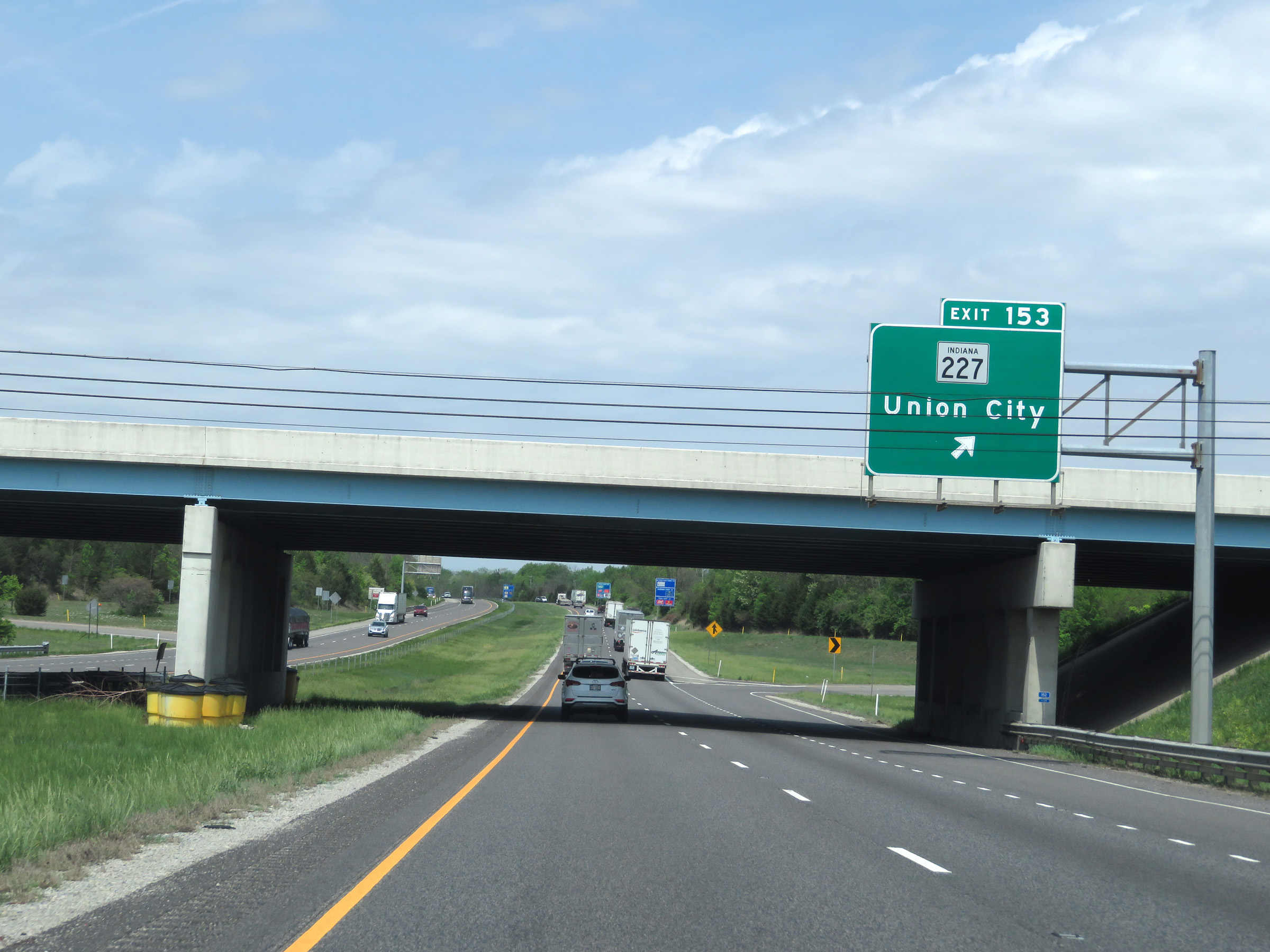 Interstate 70 West at Exit 153: IN 227 - Union City (Photo taken 5/15/18). |