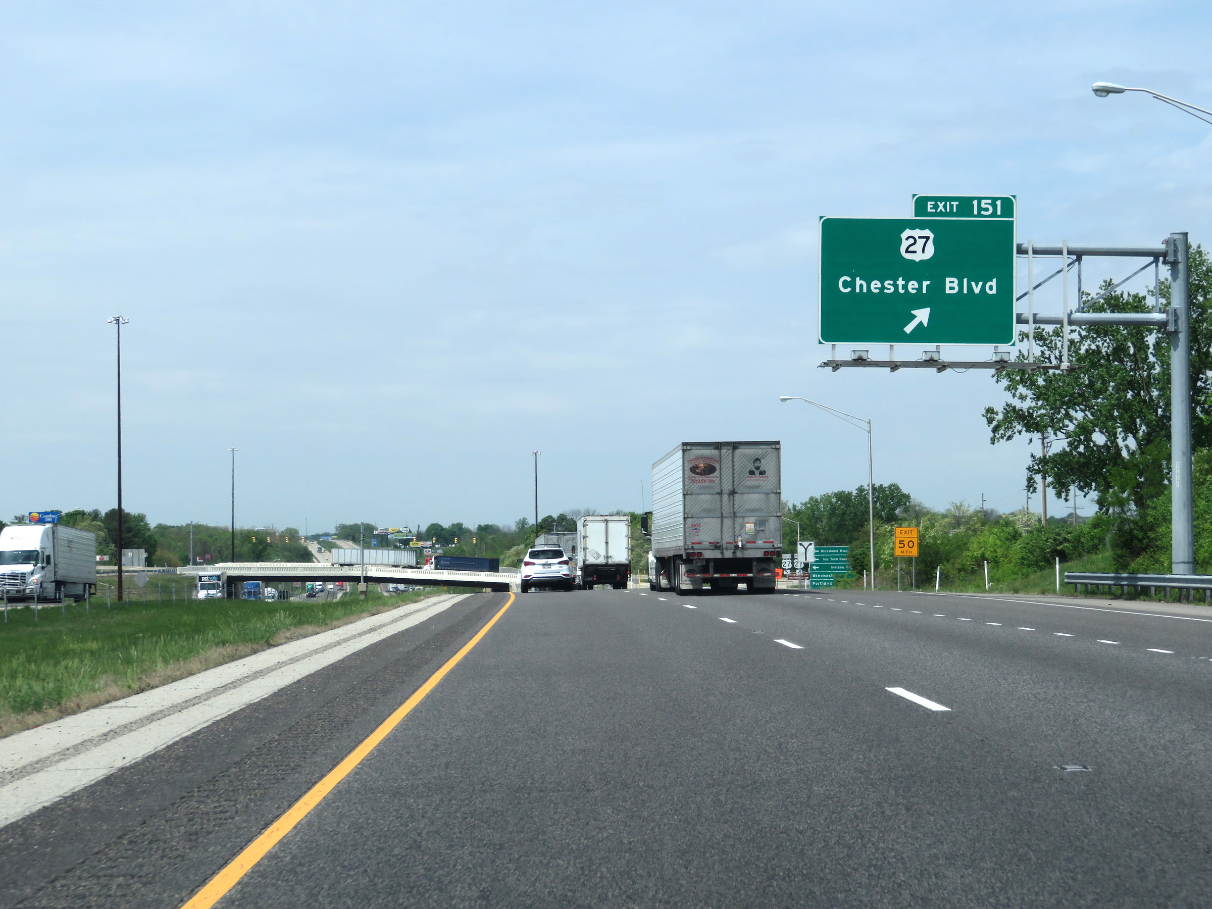 Interstate 70 West at Exit 151: US 27 - Chester Blvd (Photo taken 5/15/18). |