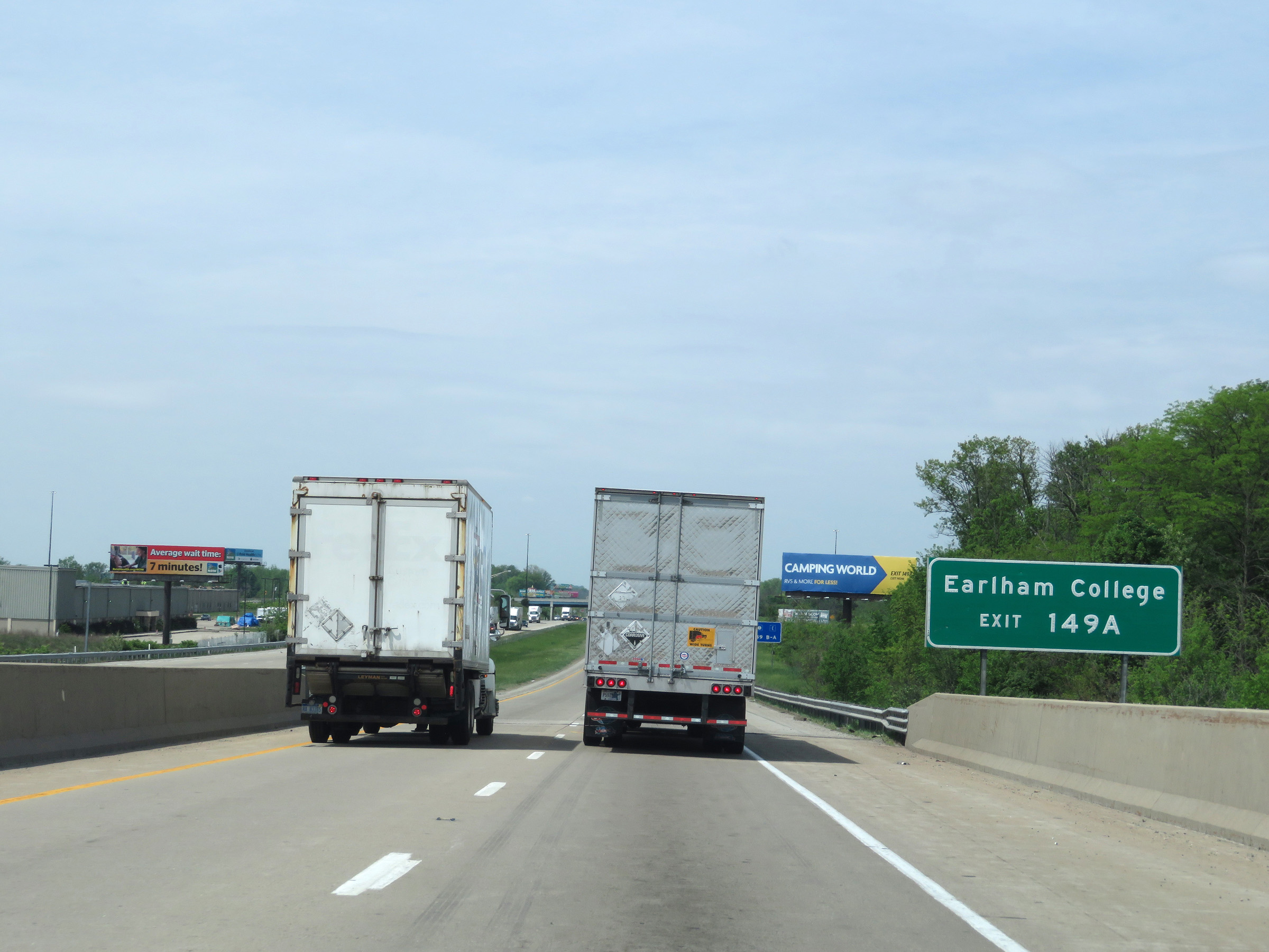 Take Exit 149A to Earlham College. (Photo taken 5/15/18). |