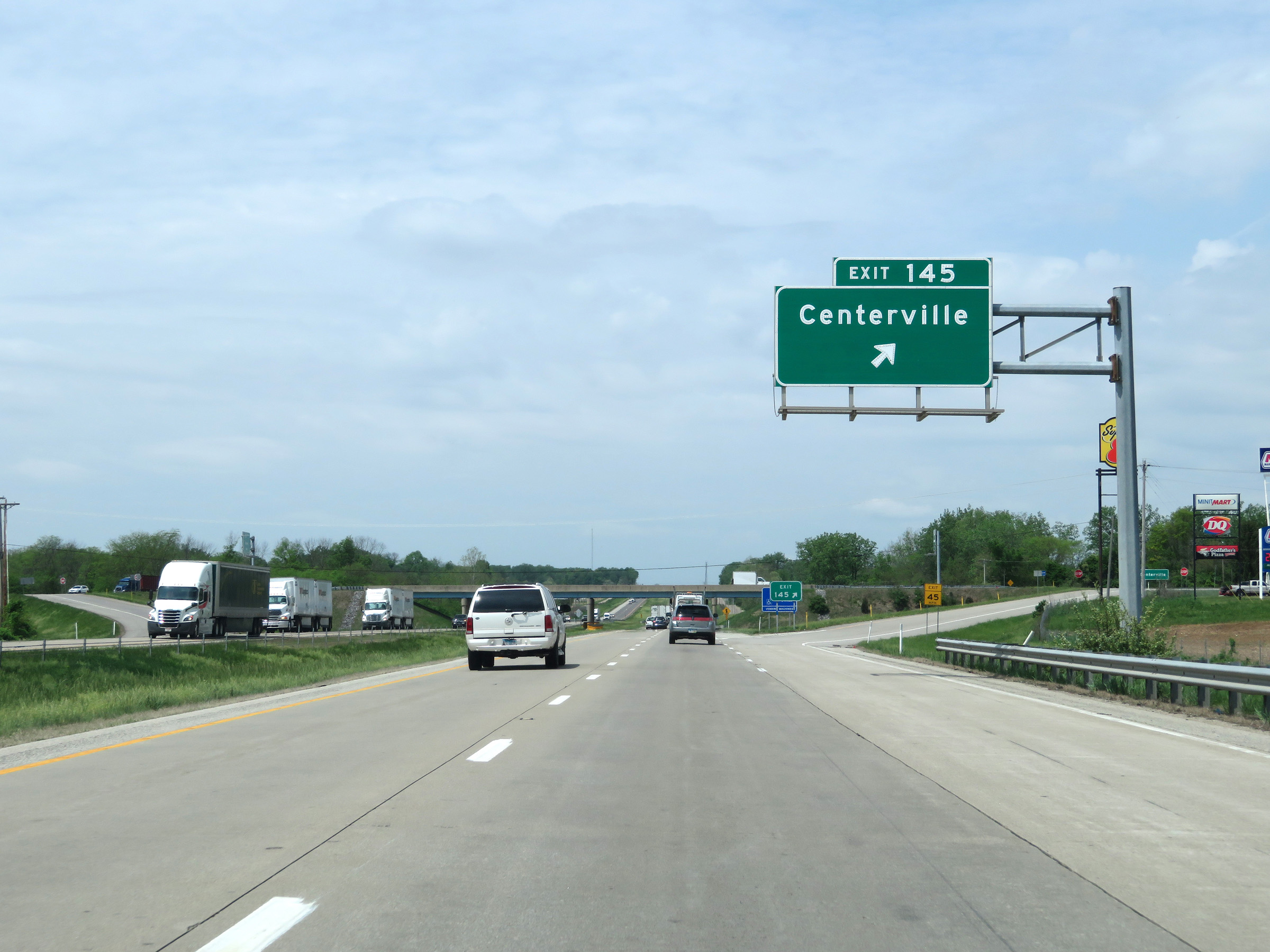 Interstate 70 West at Exit 145: Centerville (Photo taken 5/15/18). |