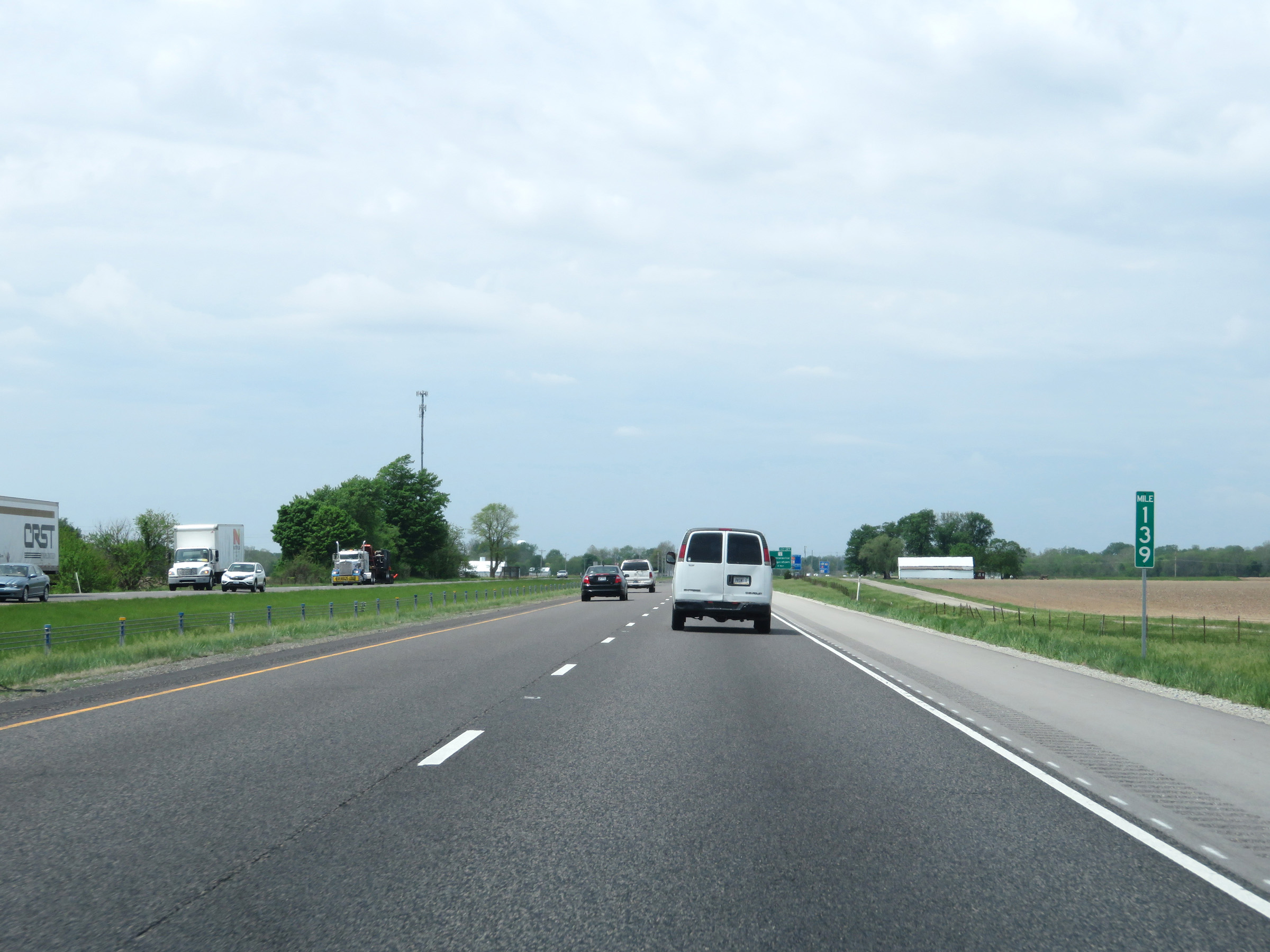 View on Interstate 70 West at mile marker 113, as it prepares to enter Hancock County. (Photo taken 5/15/18). |