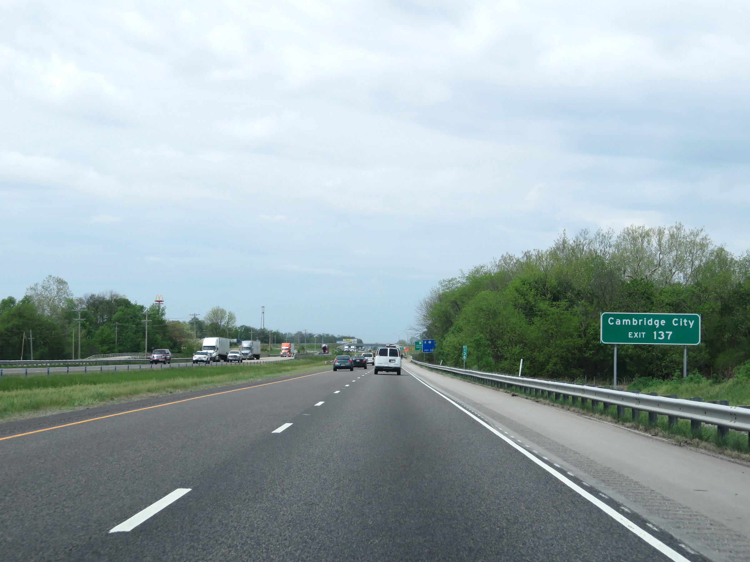 Take Exit 137 to Cambridge City. (Photo taken 5/15/18). |
