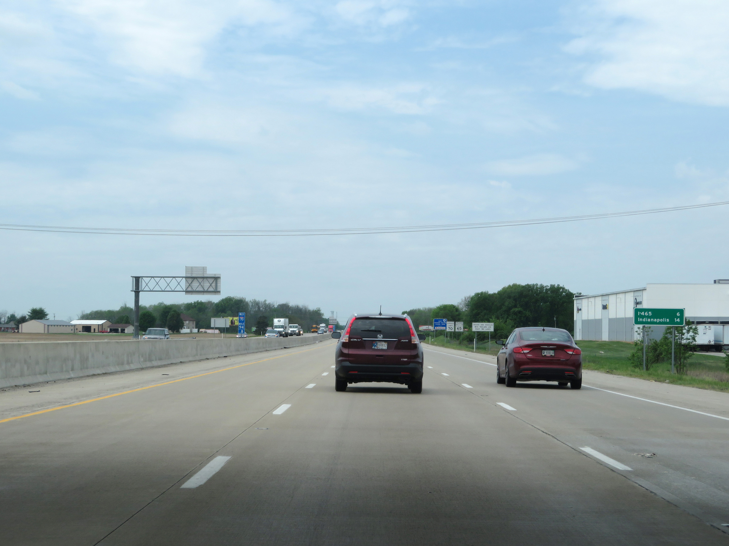 The junction of Interstate 465 is now 6 miles ahead, while it's 14 miles to downtown Indianapolis. (Photo taken 5/15/18). |