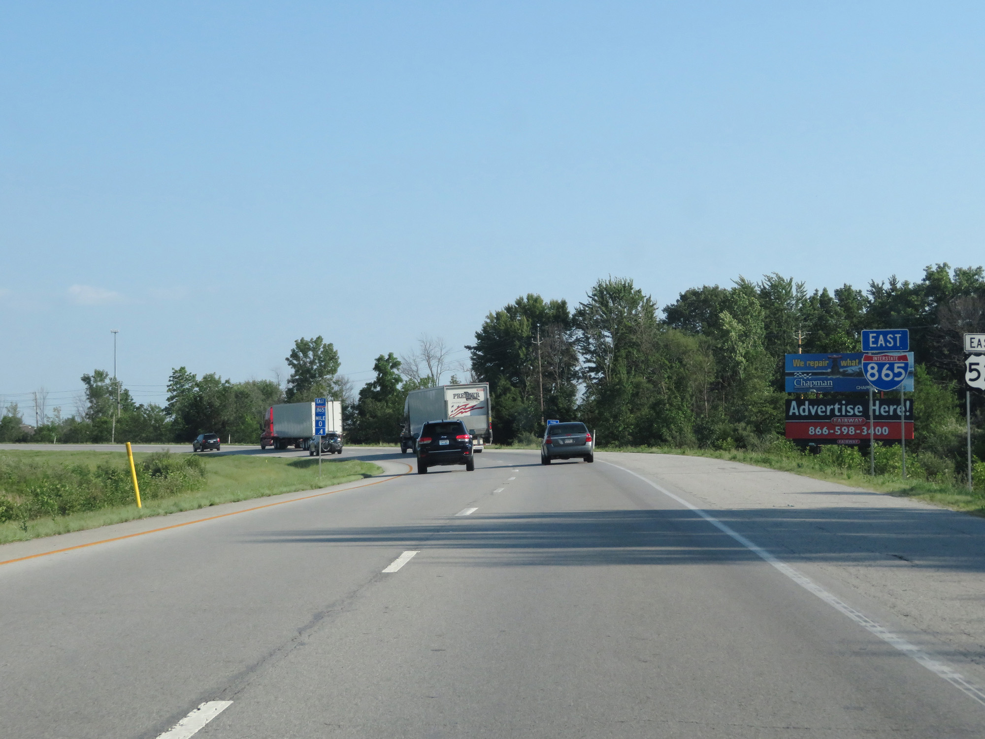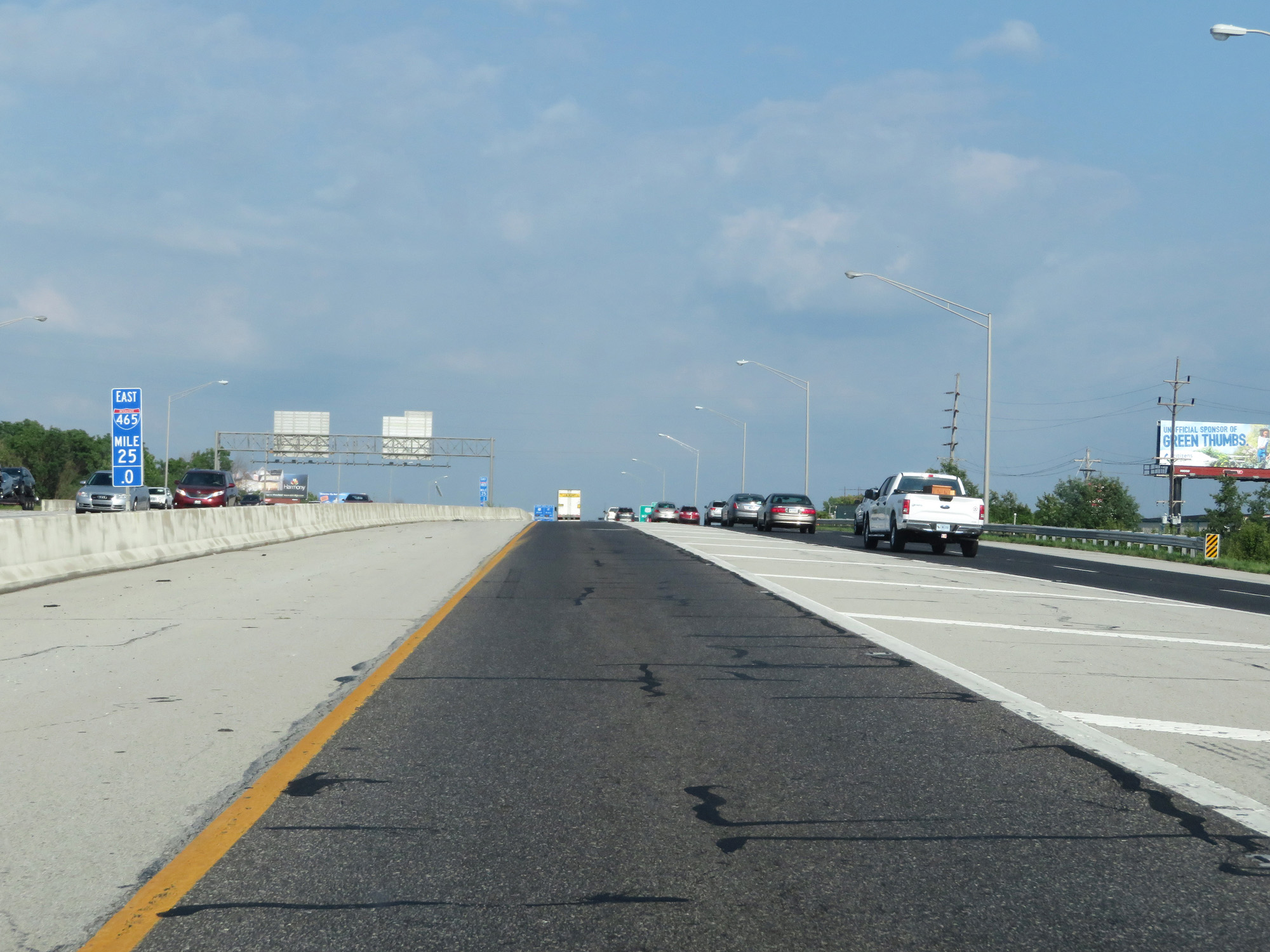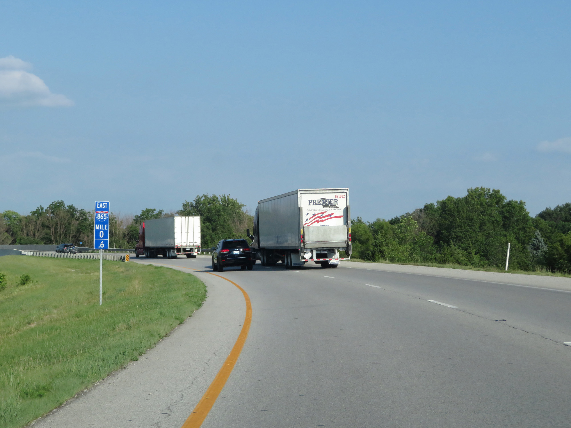 Interstate 865 East comes to an end as it merges into Interstate 465 East (Inner Loop) at mile marker 25. (Photo taken 7/18/17). |