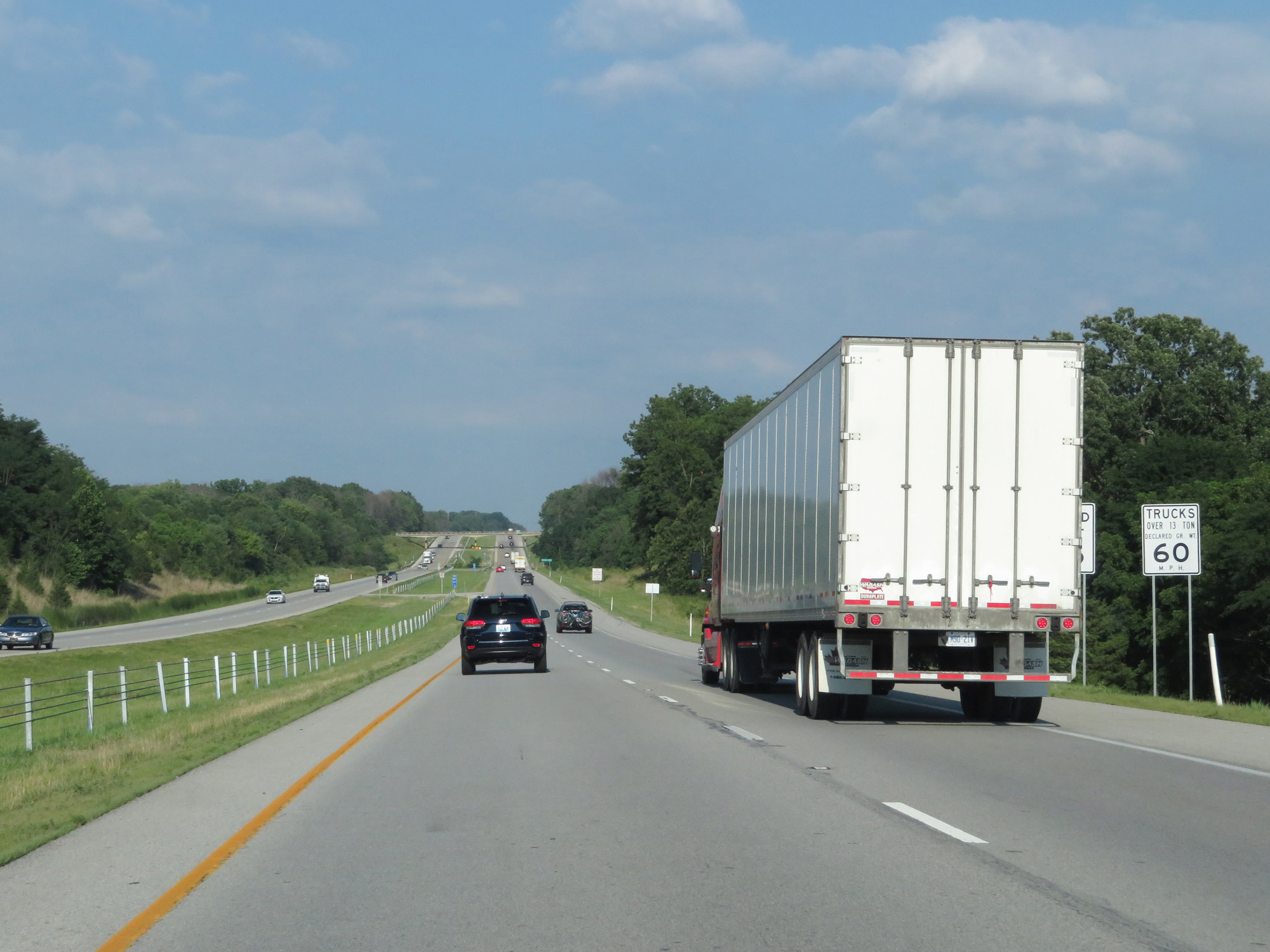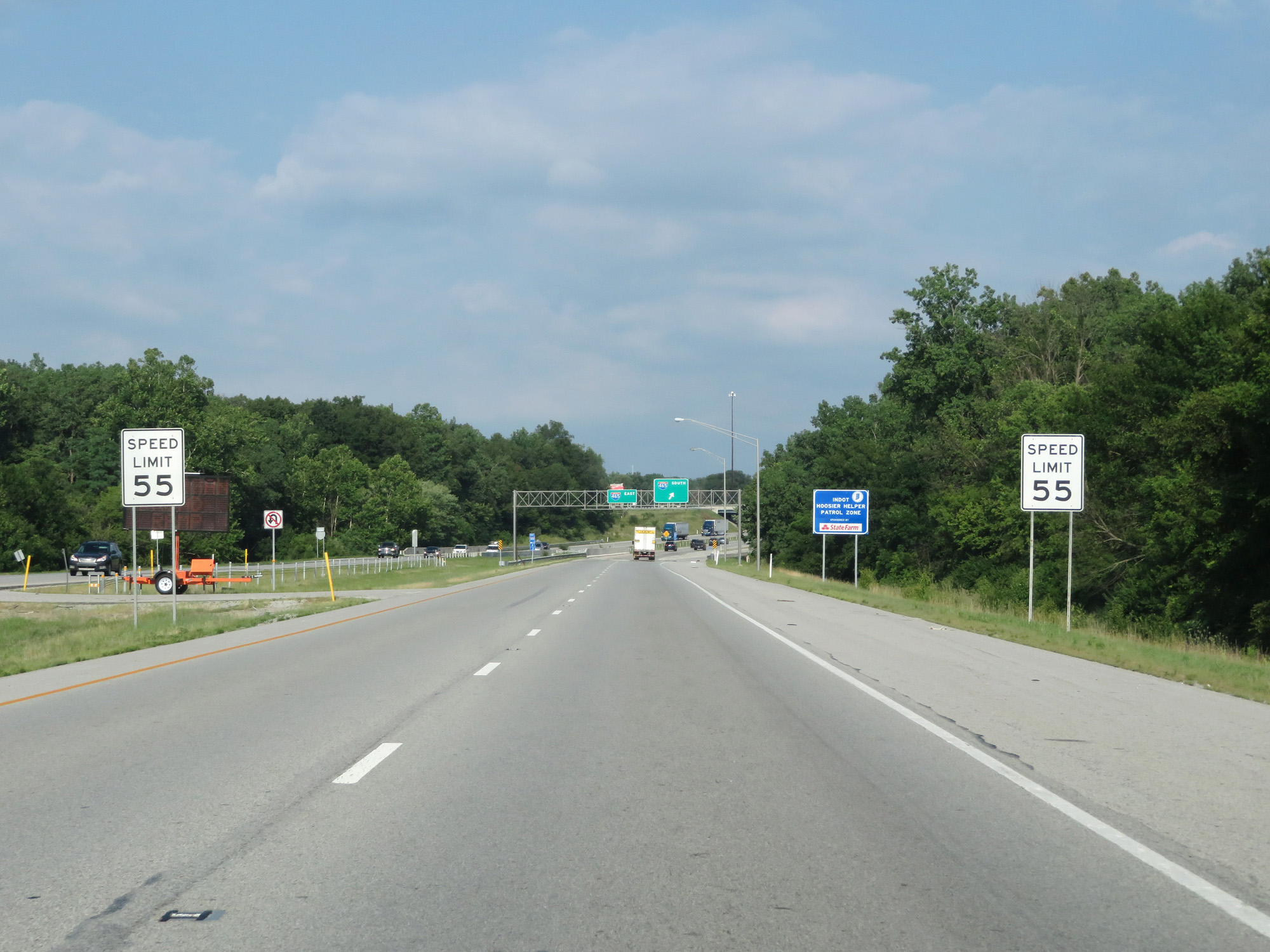 Just east of mile marker 4, the speed limit decreases to 55 mph for all traffic. (Photo taken 7/18/17). |