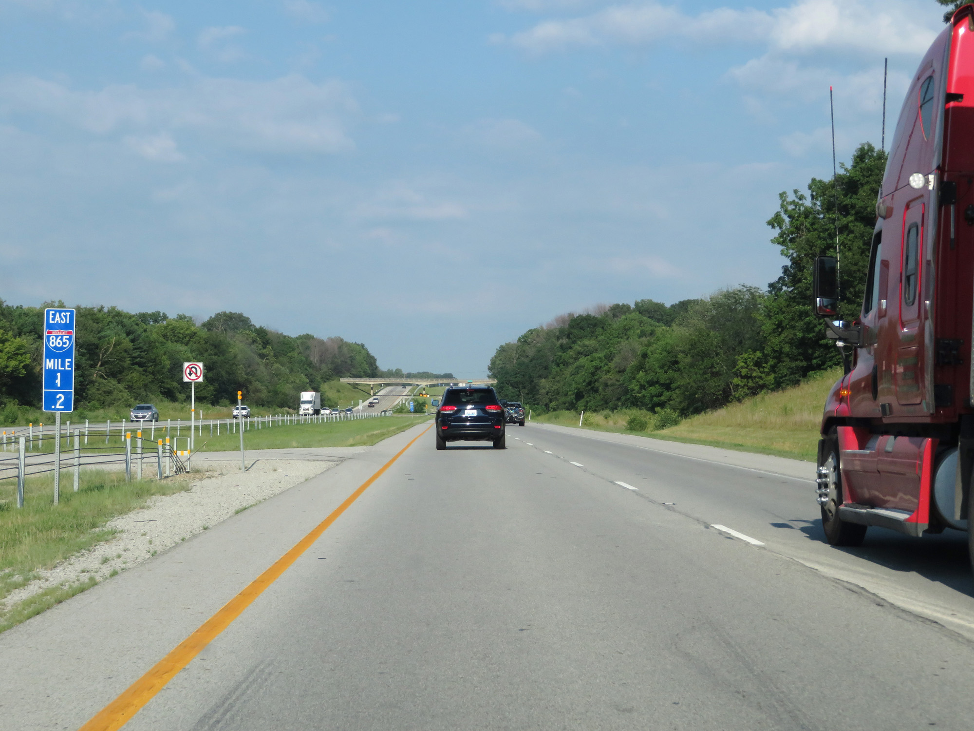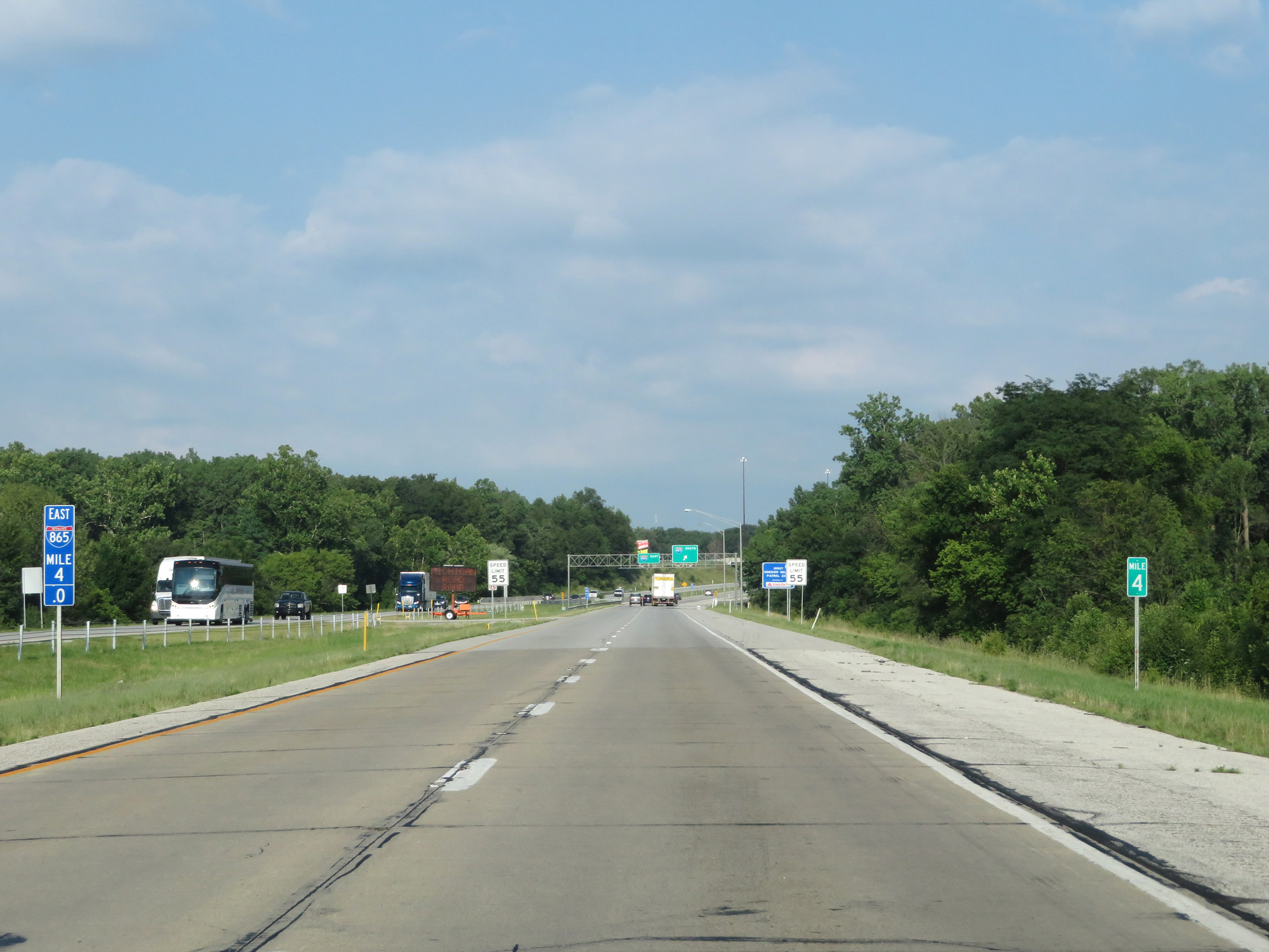 Interstate 865 East at mile marker 4. (Photo taken 7/18/17). |