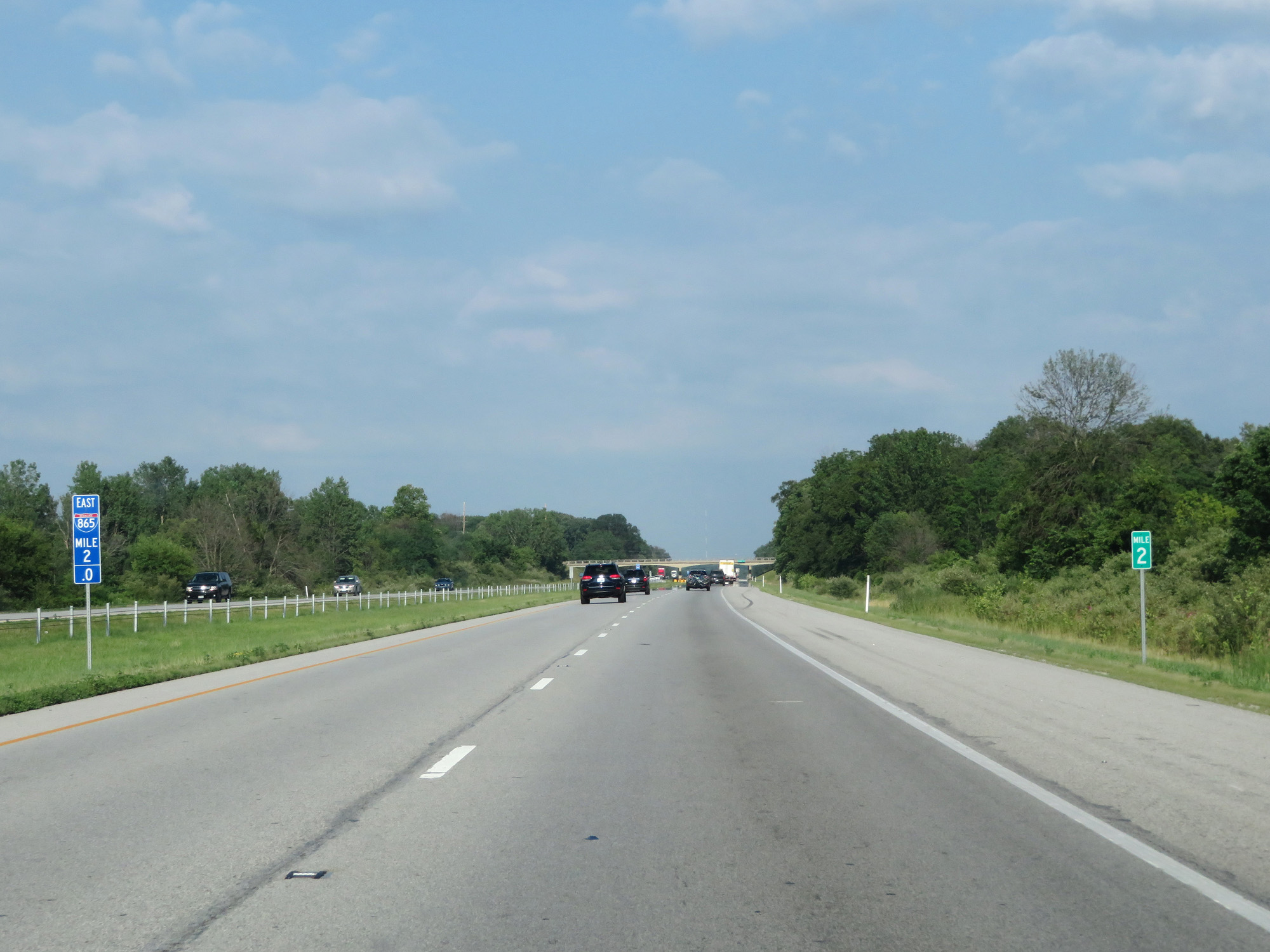 Interstate 865 East at mile marker 2. (Photo taken 7/18/17). |