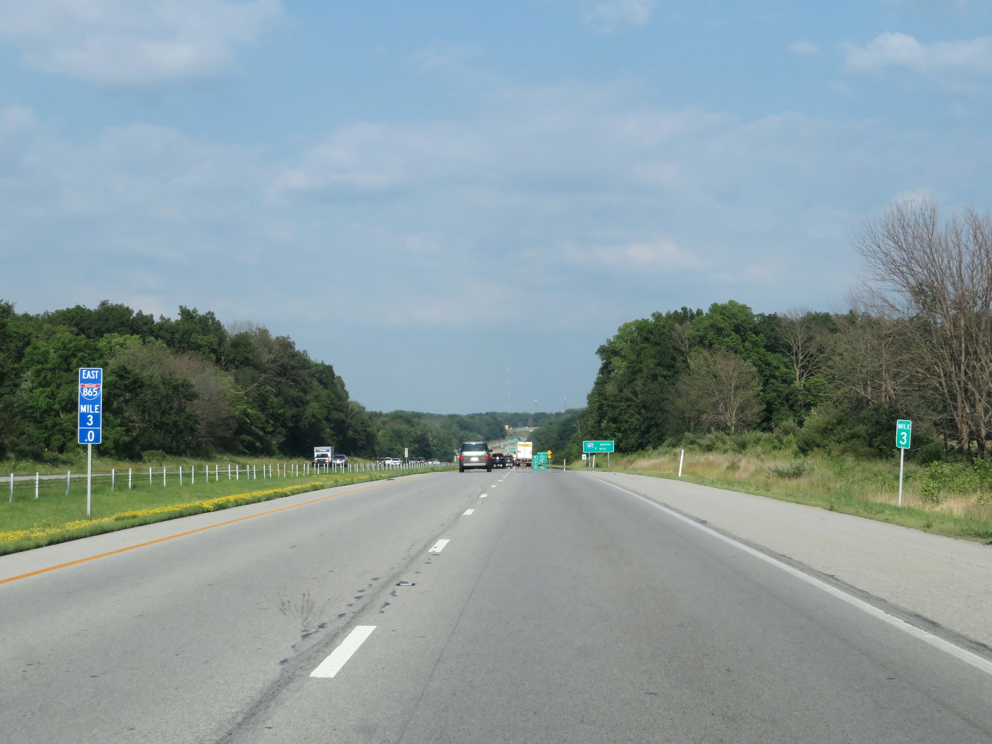 Interstate 865 East at mile marker 3. (Photo taken 7/18/17). |