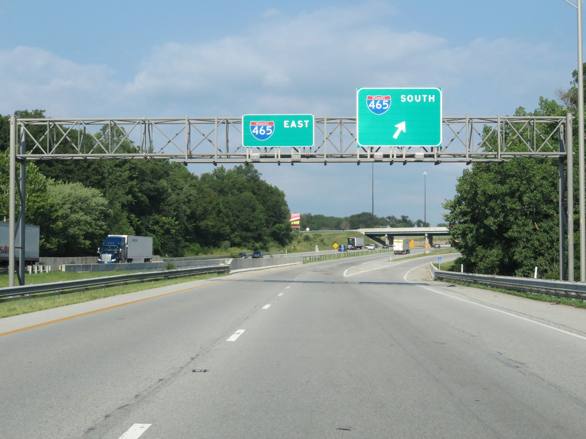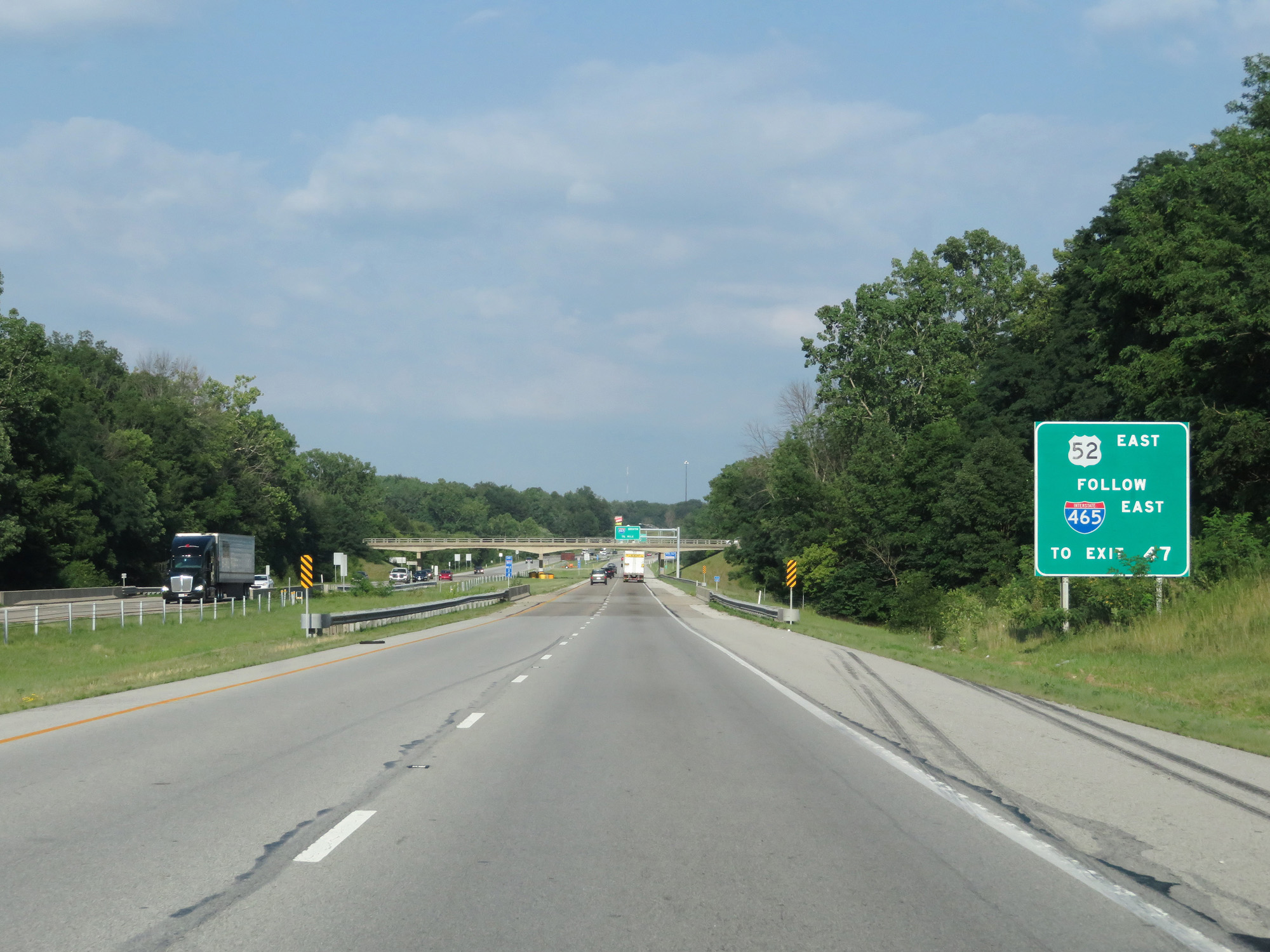 US 52 traffic should follow Interstate 465 East to Exit 47. (Photo taken 7/18/17). |