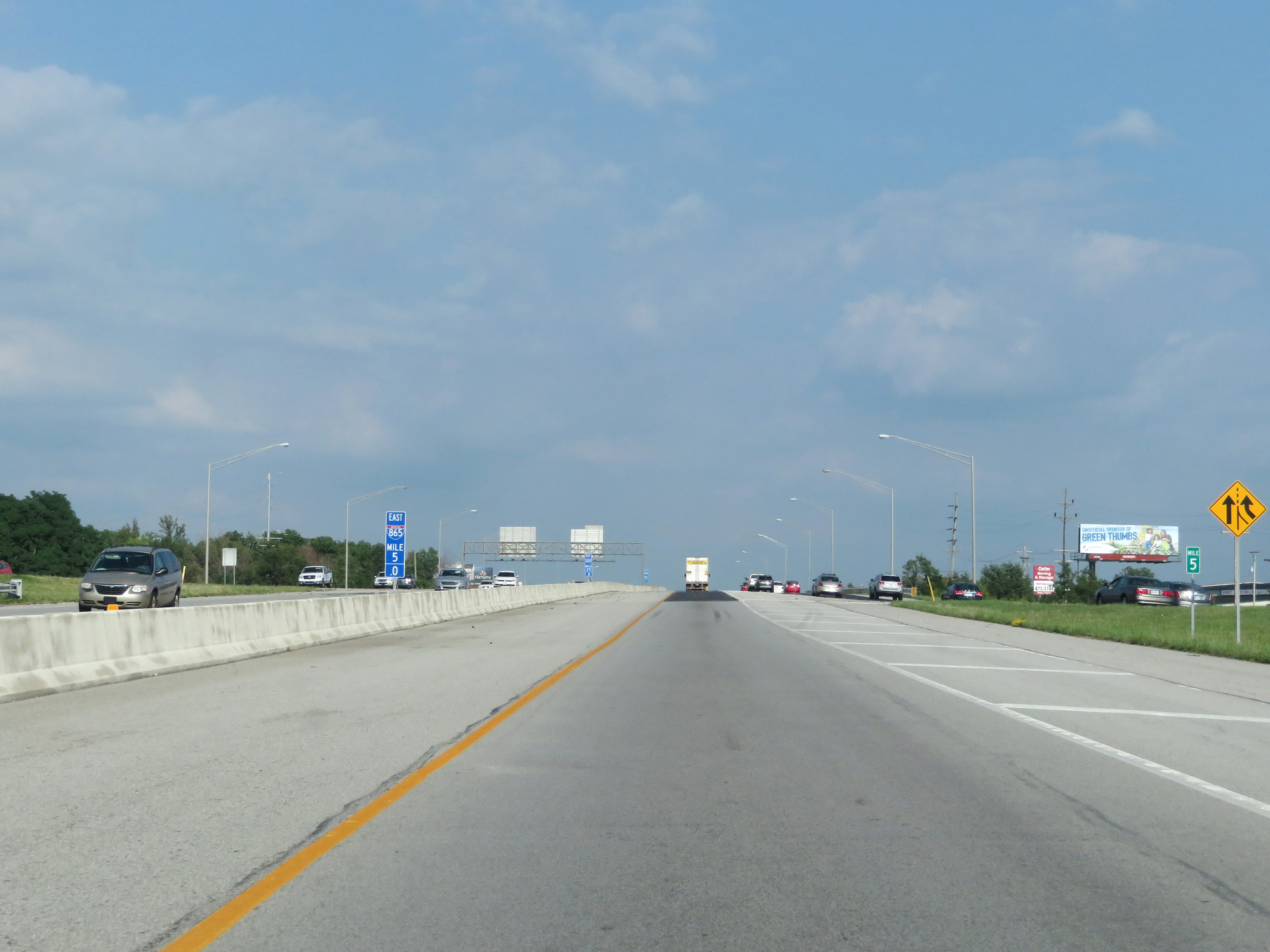 Interstate 865 East at the ramp to Interstate 465 South (Outer Loop). (Photo taken 7/18/17). |