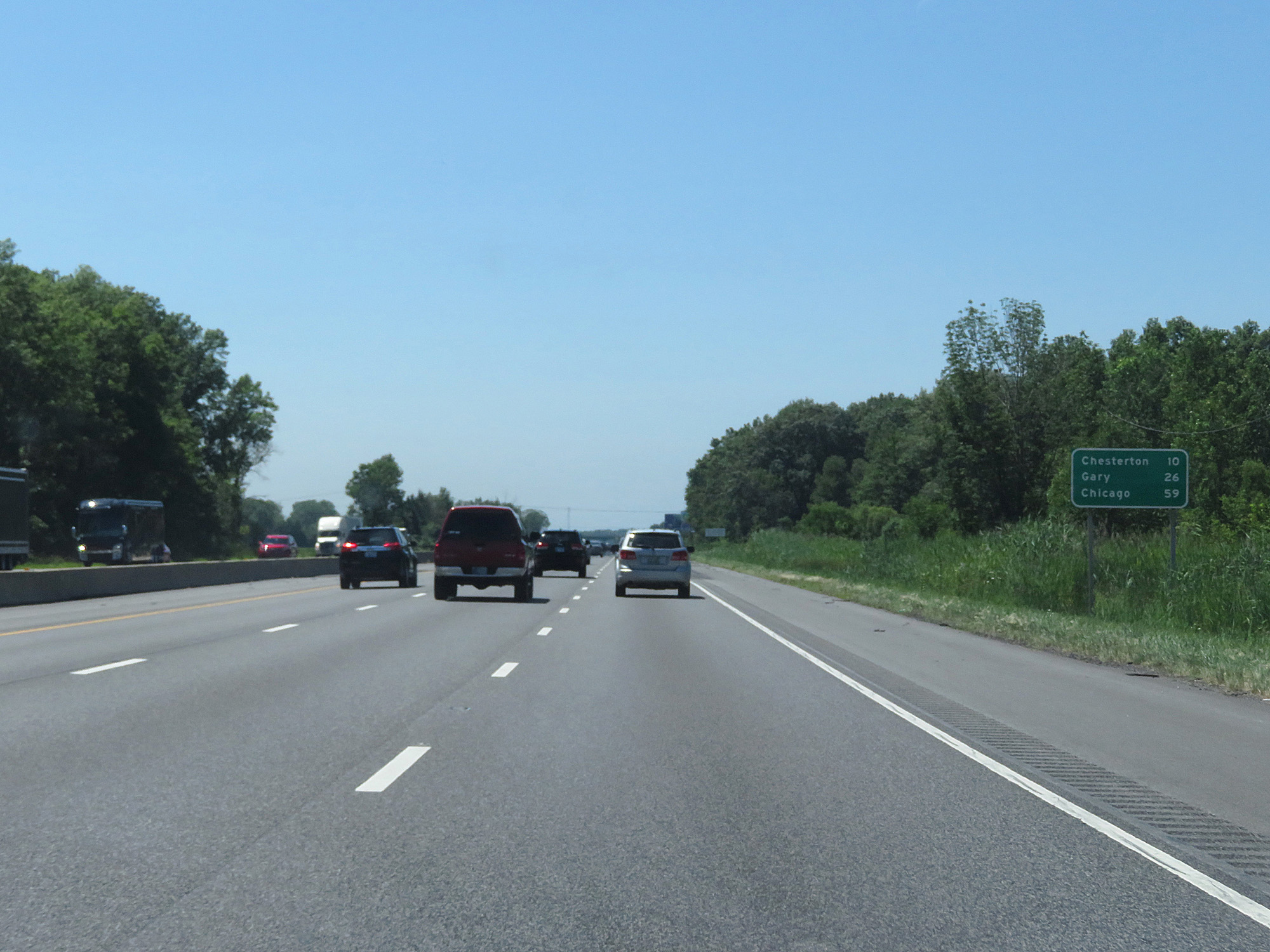 Mileage sign on Interstate 94 West. It's 10 miles to Chesterton, 26 miles to Gary, and 59 miles to Chicago. (Photo taken 7/18/17). |