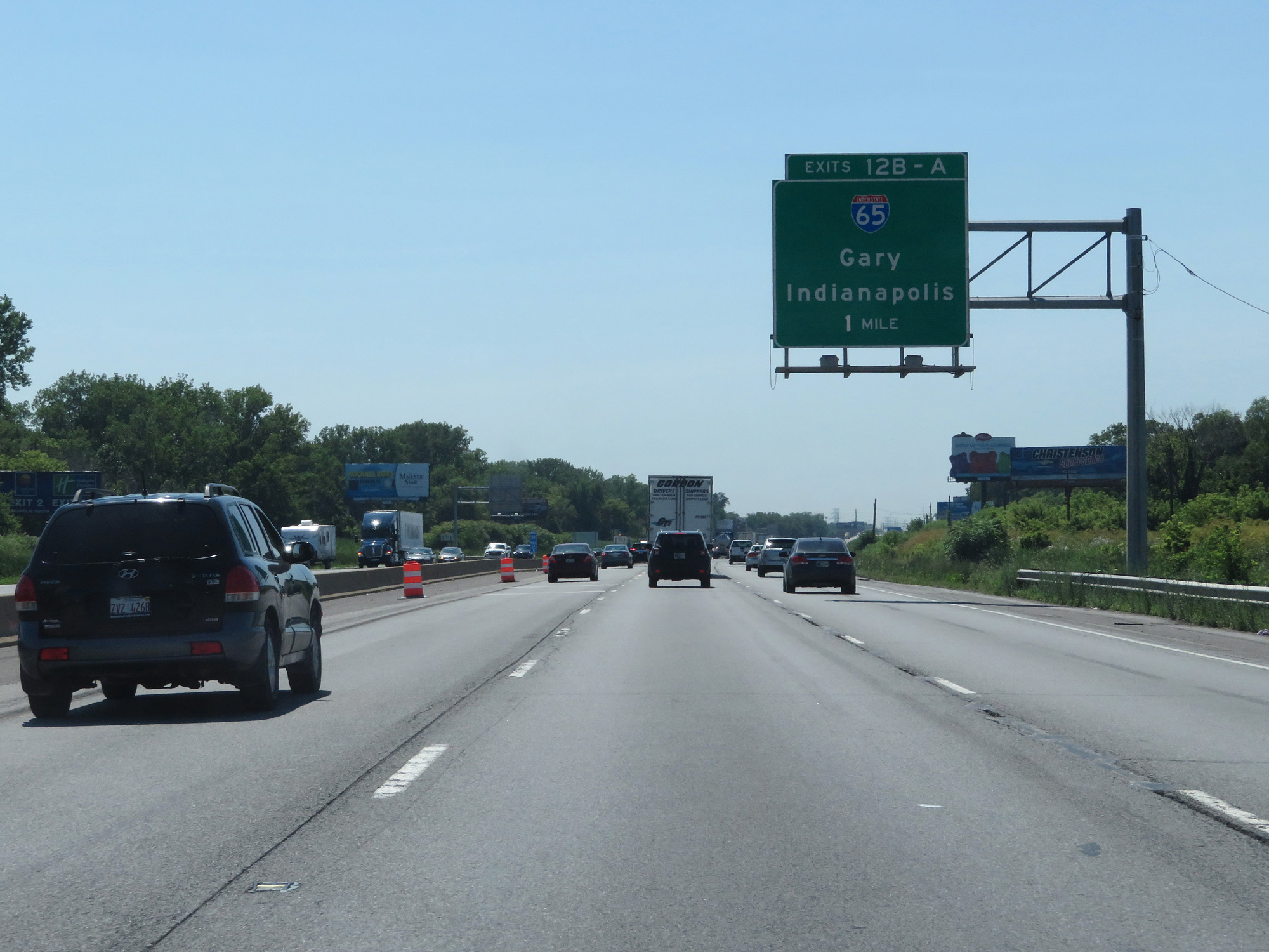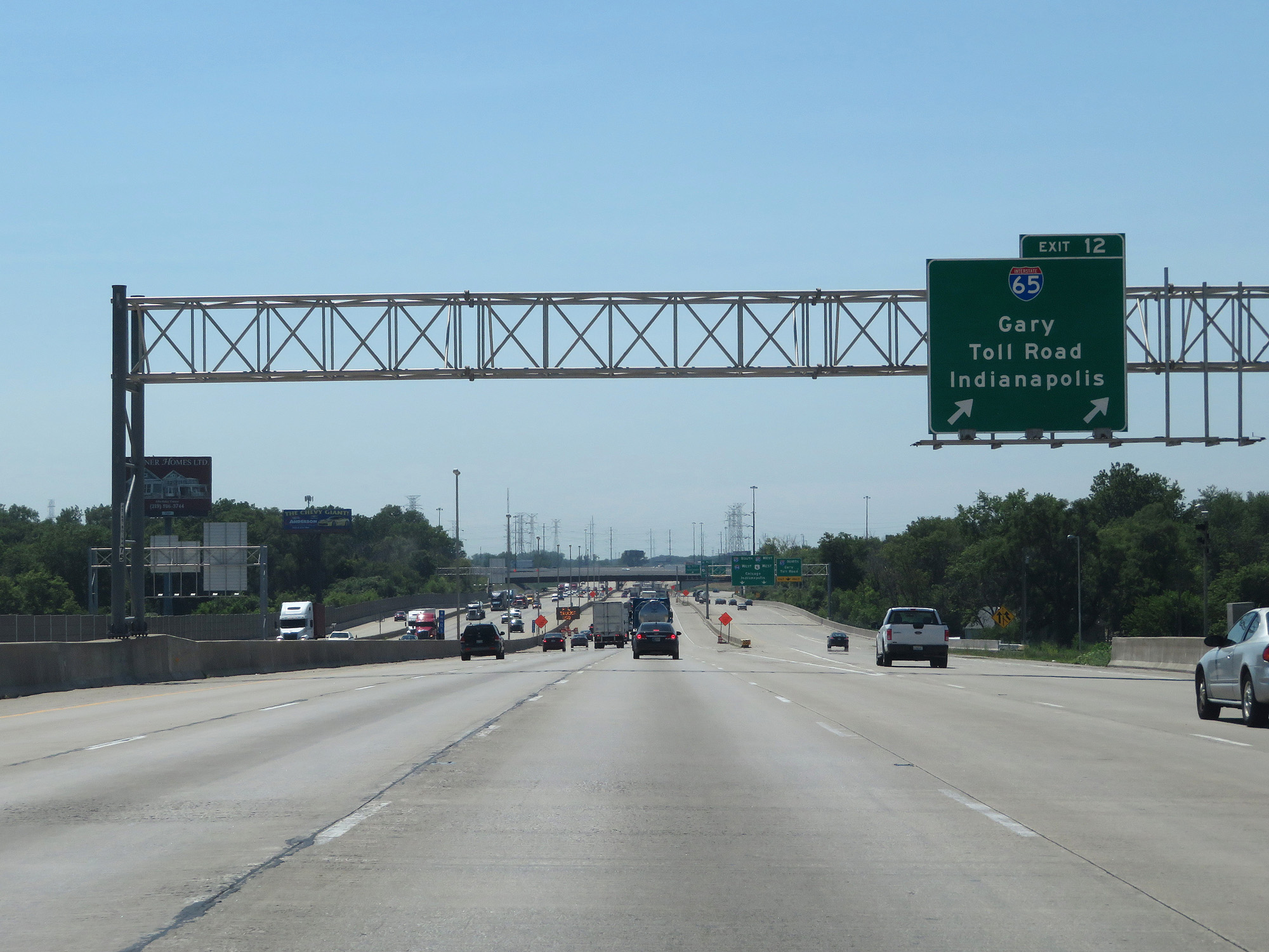Interstate 94 West / Interstate 80 West at Exit 12: Interstate 65 - Gary / Toll Road / Indianapolis (Photo taken 7/18/17). |