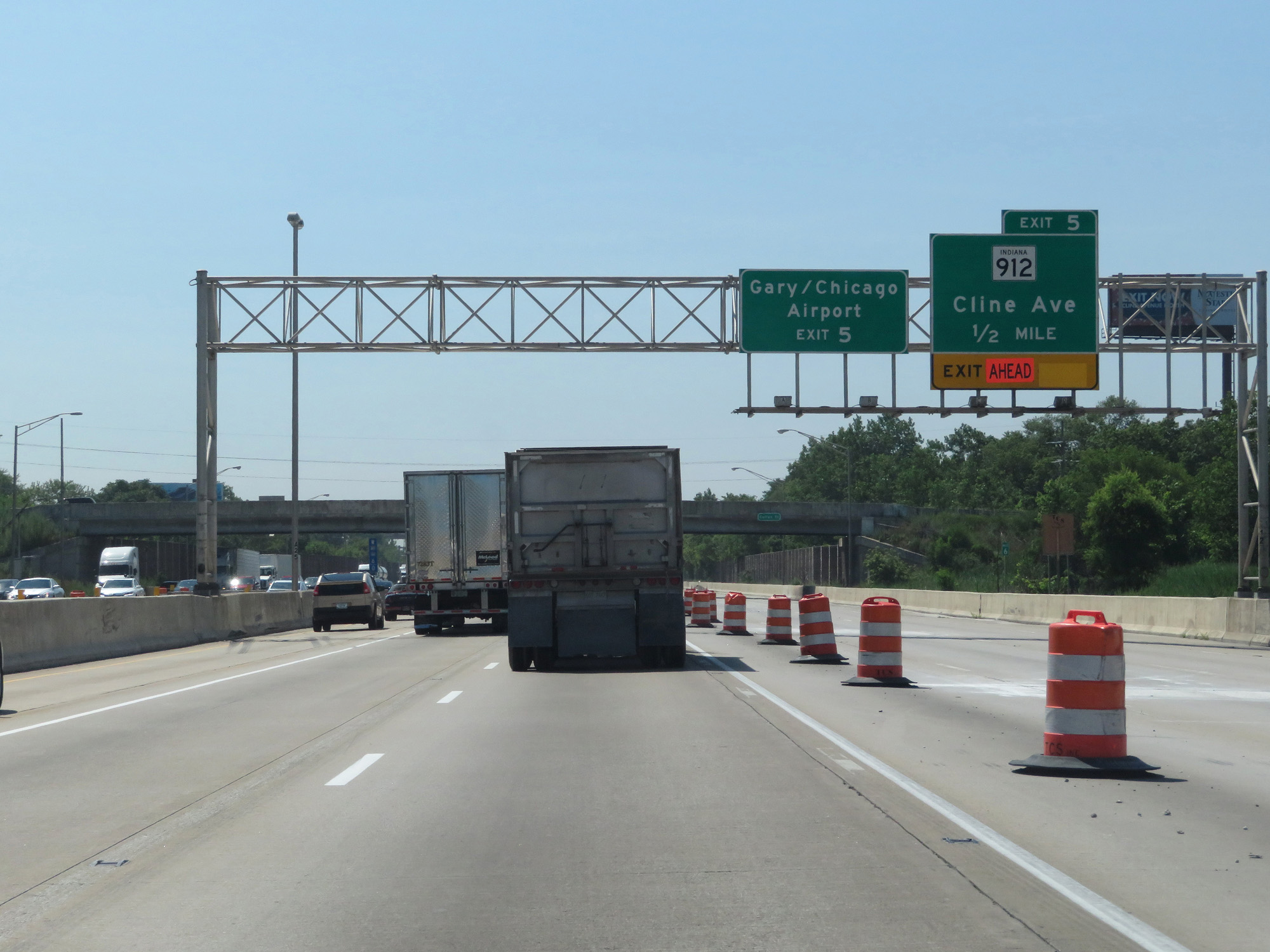 Interstate 94 West / Interstate 80 West at Exit 5: IN 912 - Cline Ave (Photo taken 7/18/17). |