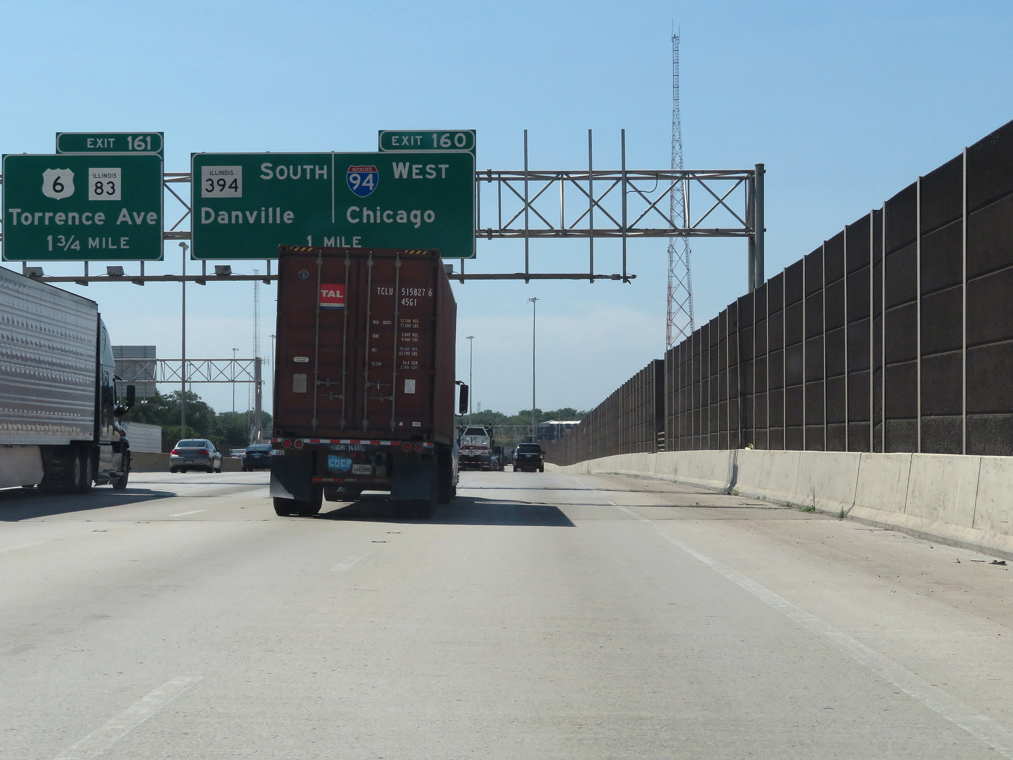 Interstate 94 West / Interstate 80 West approaching the Illinois border. Keep to the right at the border to remain on Interstate 94 West via Exit 160 to head toward downtown Chicago. (Photo taken 7/18/17). |