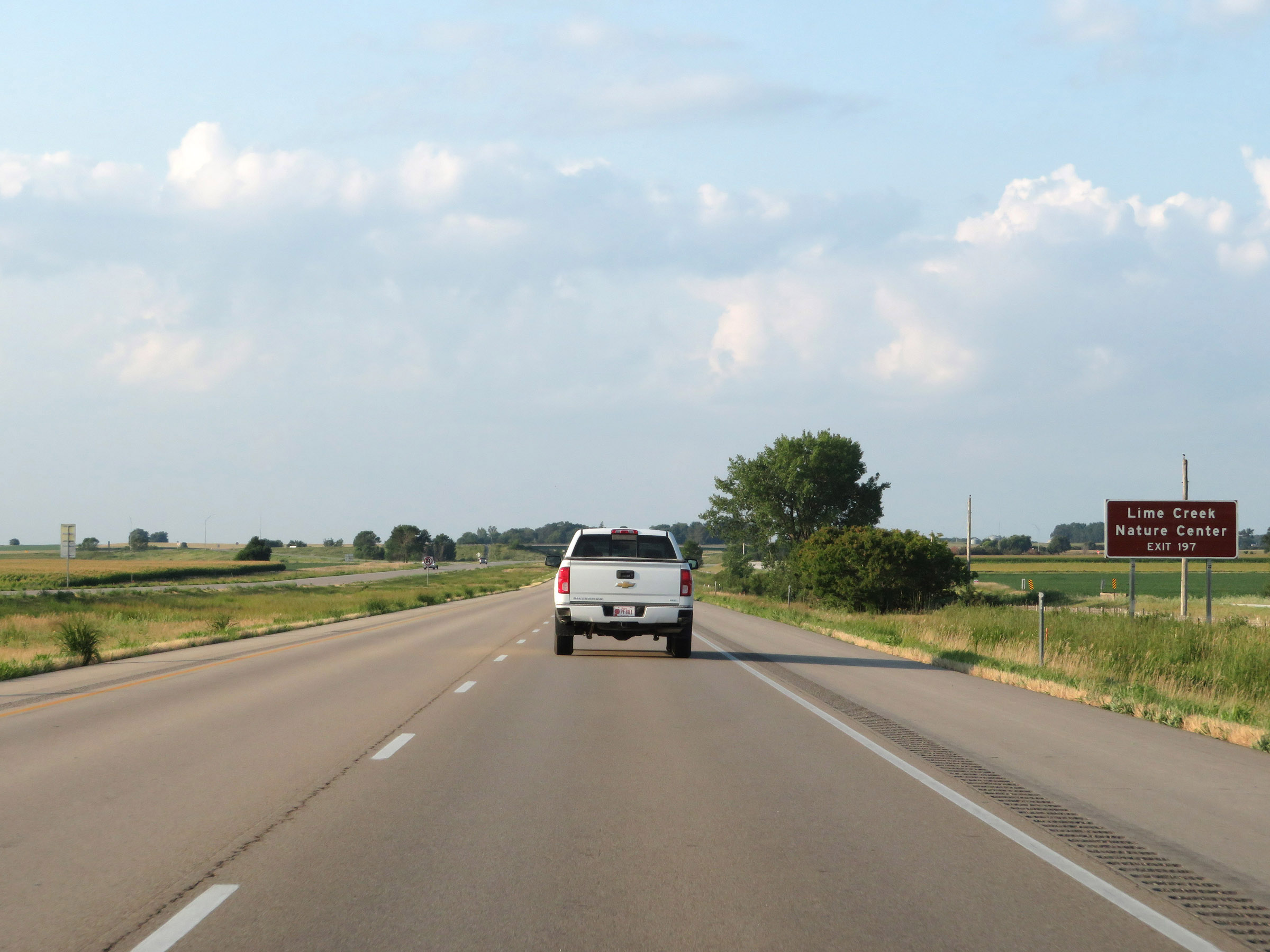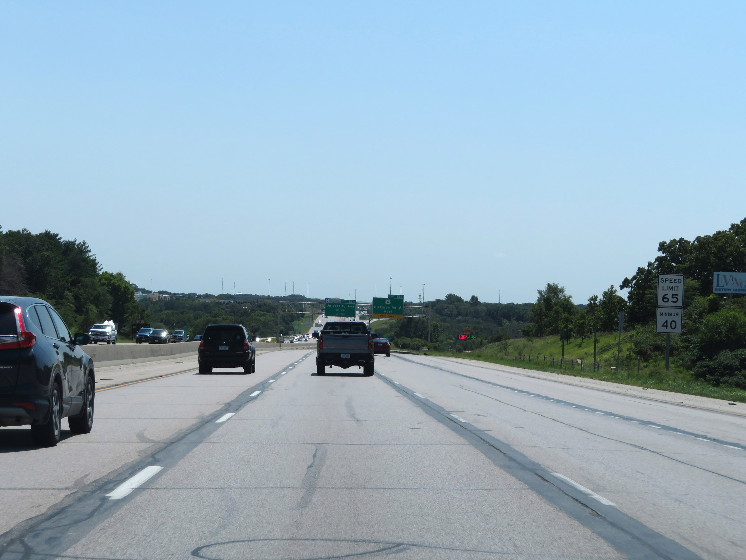 The speed limits remain 70 mph maximum and 40 mph minimum. These are the standard speed limits on most rural Interstate highways in Iowa. (Photo taken 8/8/20). |