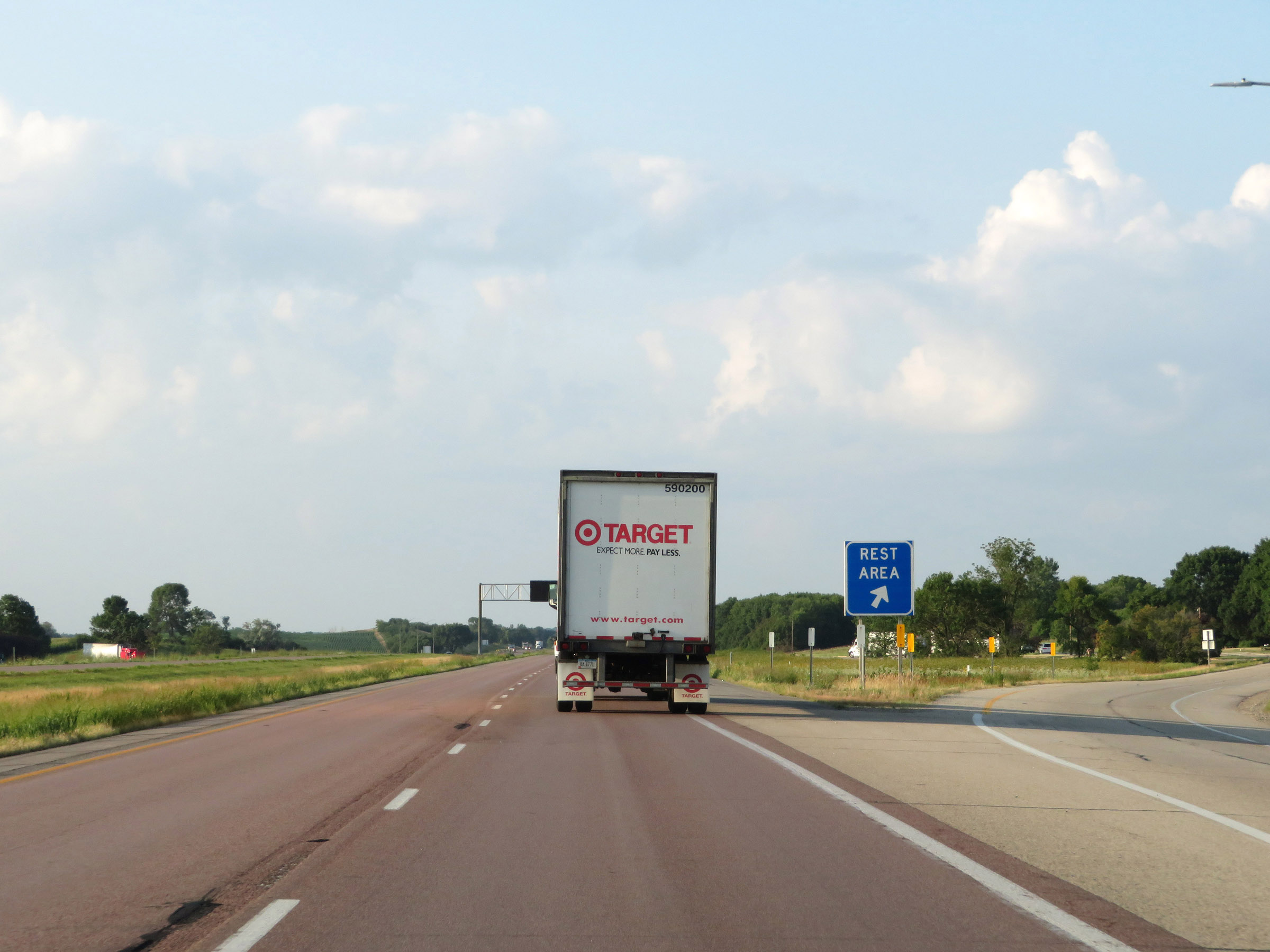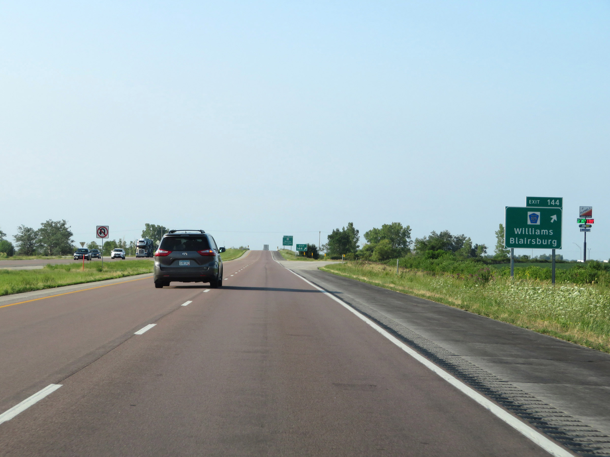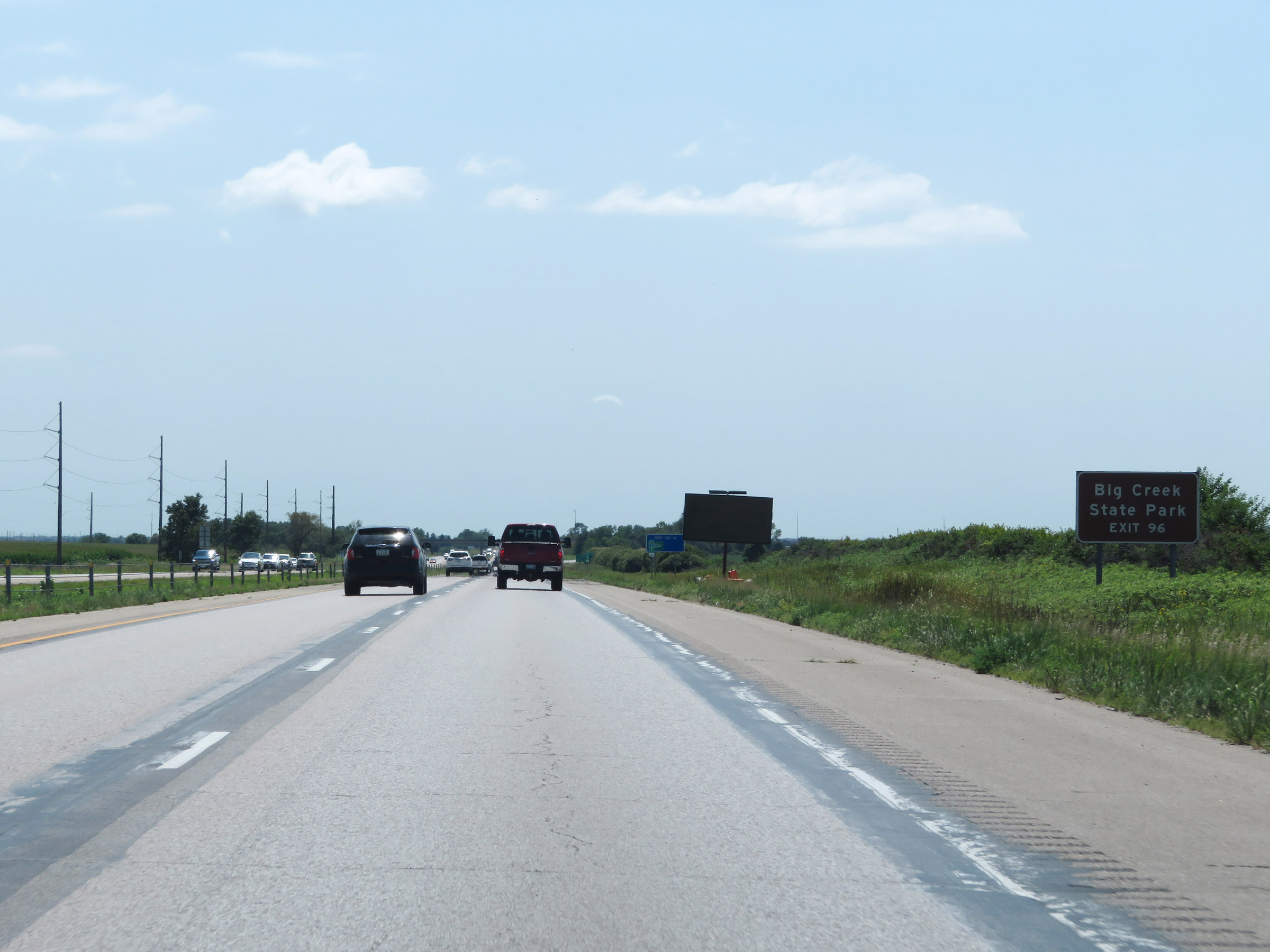 The next "modern" Rest Area (Iowa's way of saying "Rest Area with facilities") is 25 miles ahead. (Photo taken 8/8/20). |