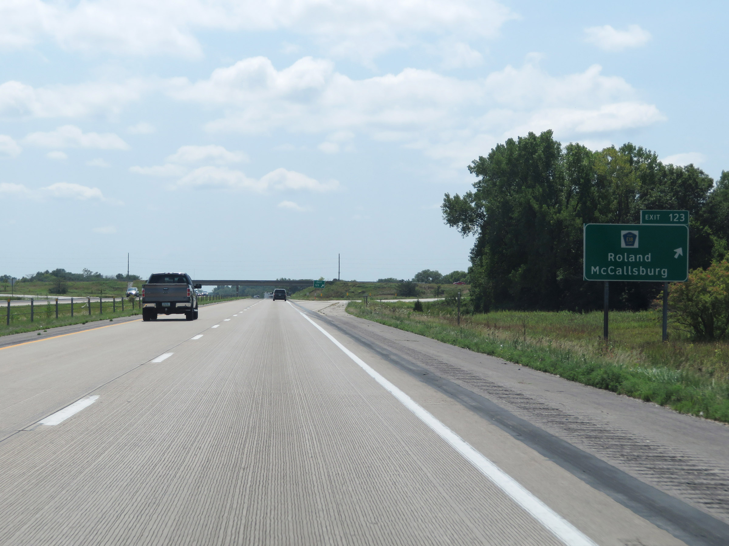 Interstate 35 South at Exit 18: CR J20 - Grand River / Garden Grove (Photo taken 8/8/20). |