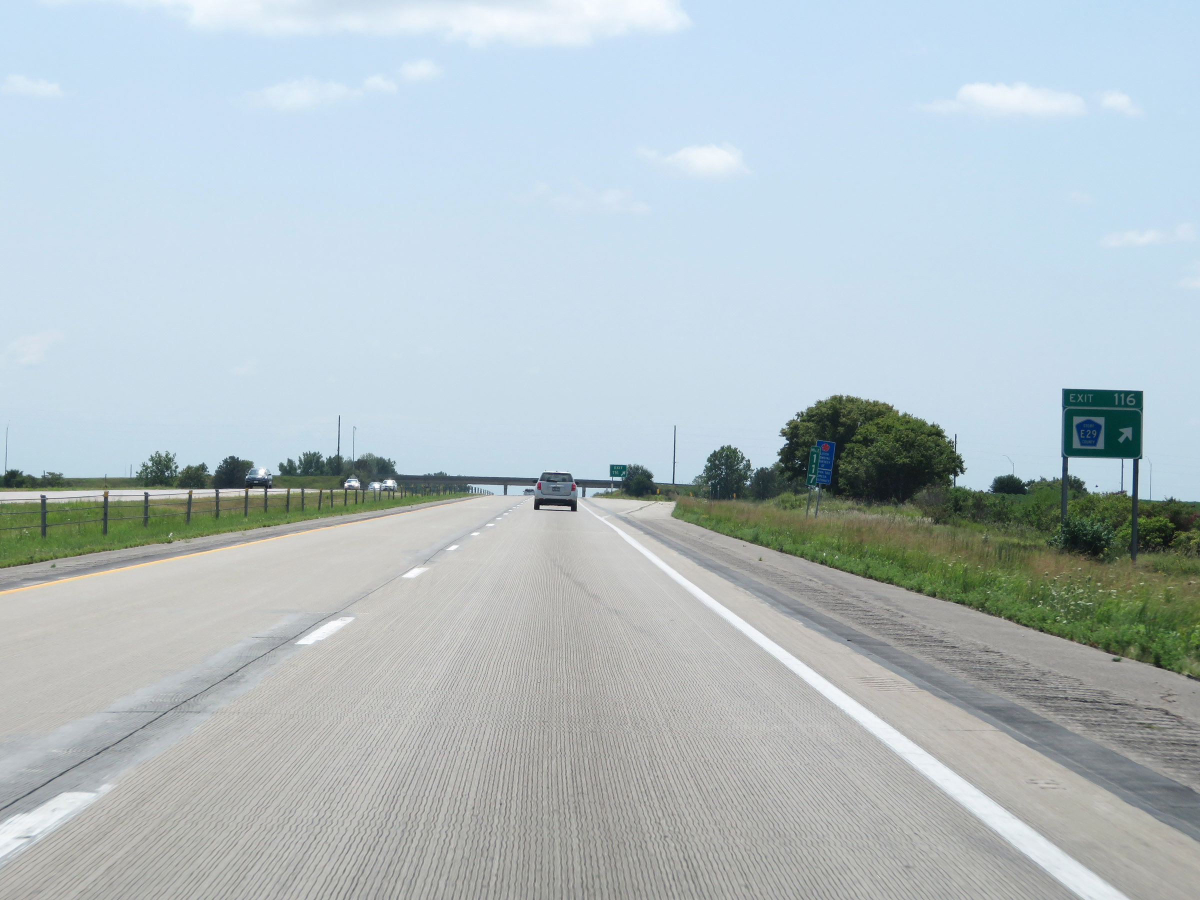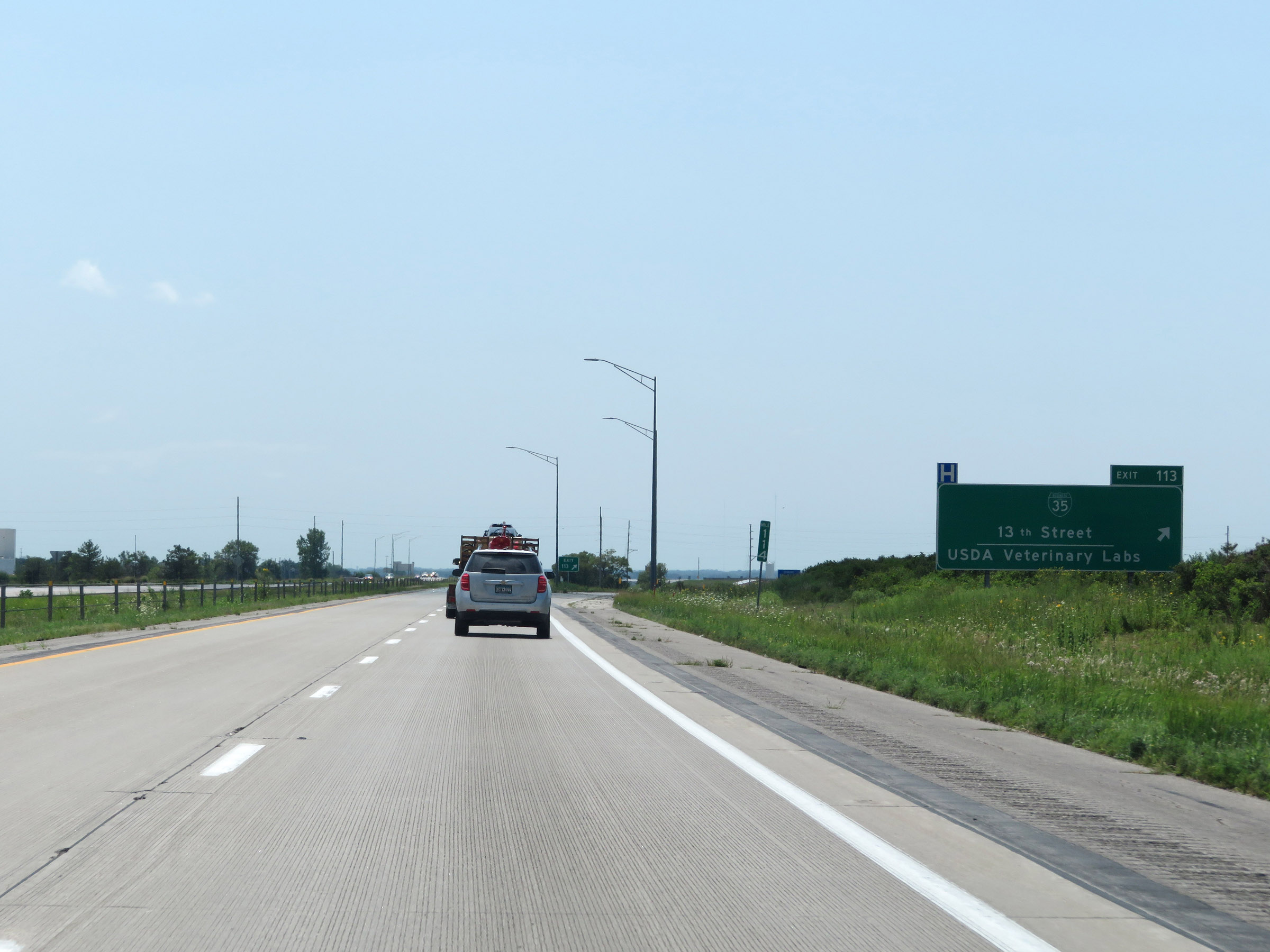 Mileage sign on Interstate 35 South. It's 13 miles to Eagleville and 110 miles to Kansas City. (Photo taken 8/8/20). |
