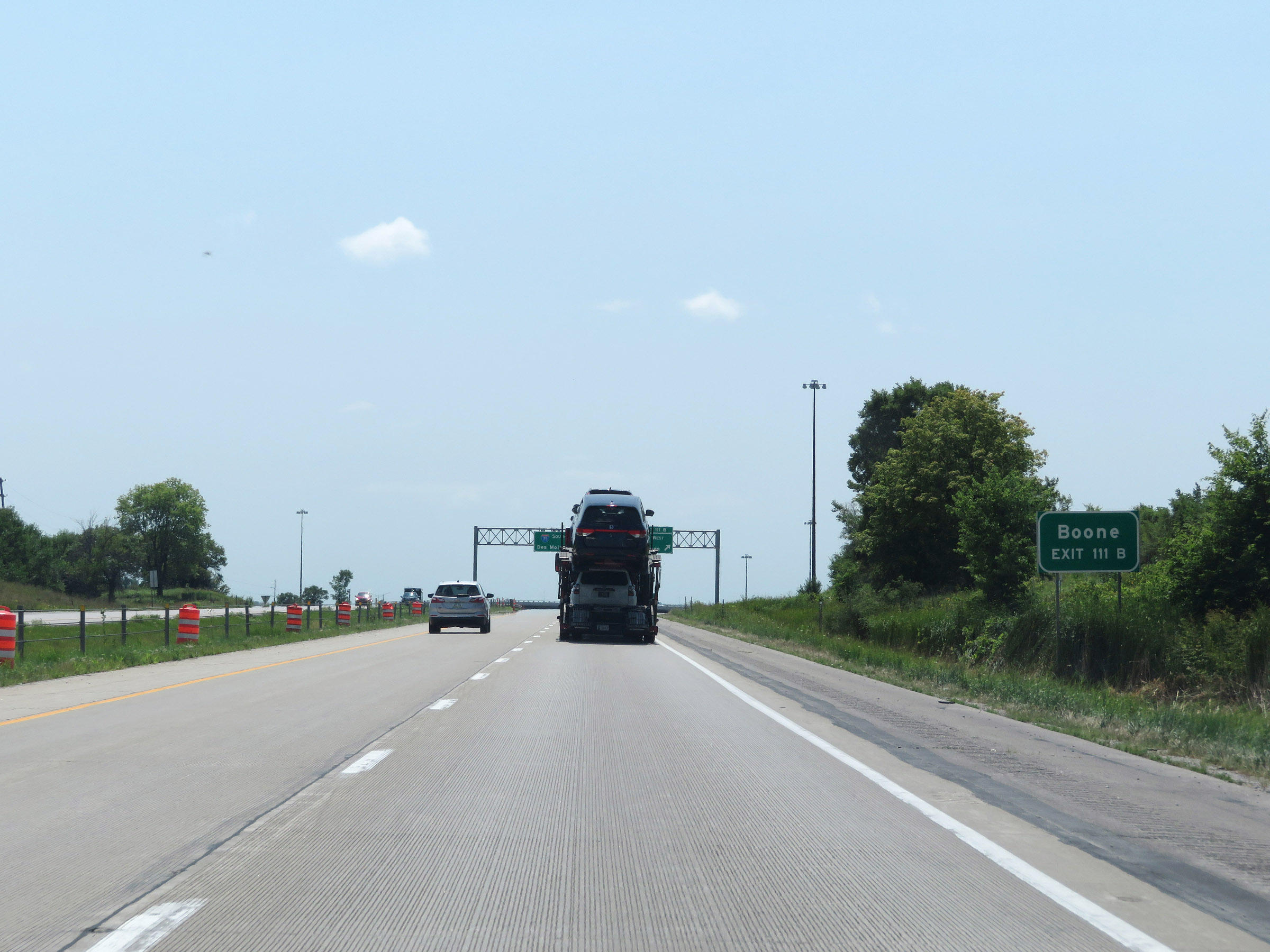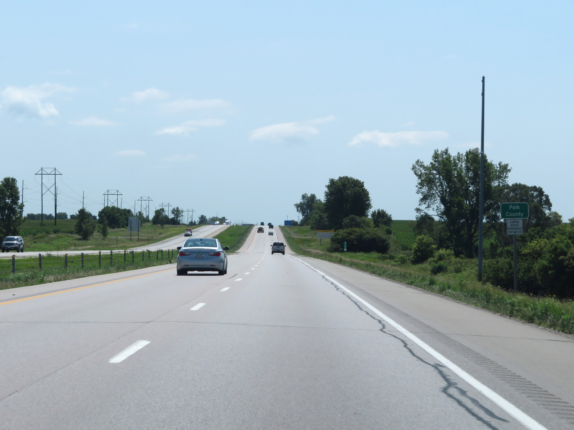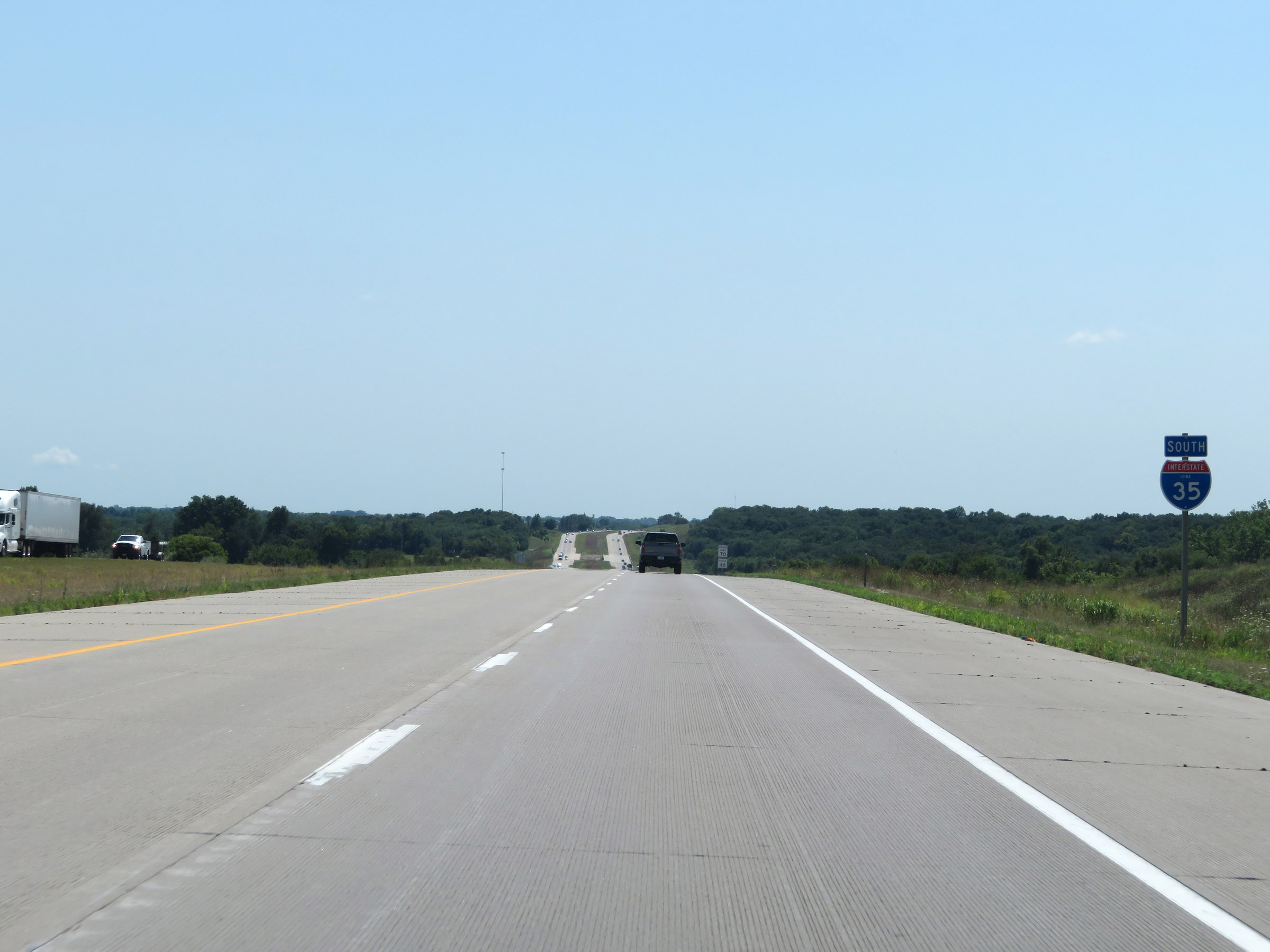 As Interstate 35 South leaves Polk County, the maximum speed limit increases to 70 mph once again. (Photo taken 8/8/20). |
