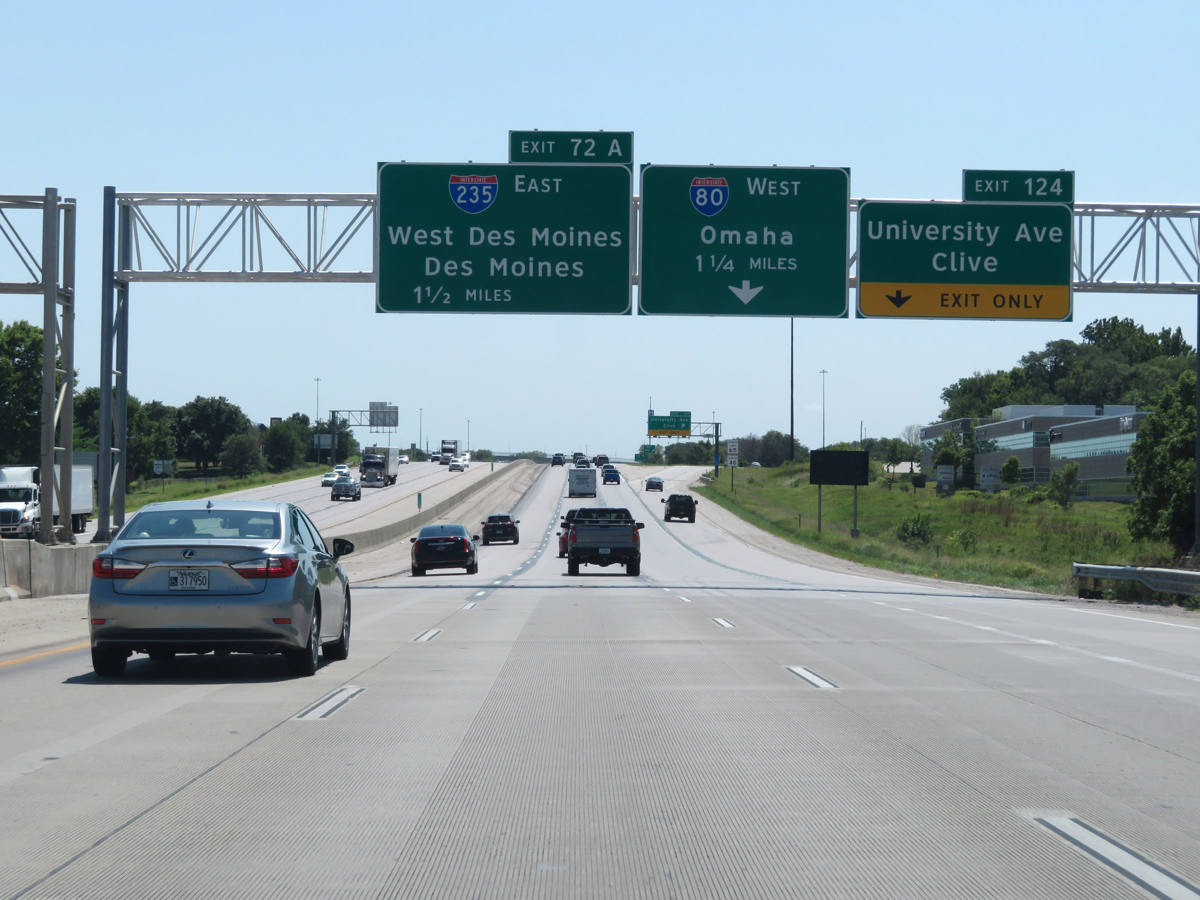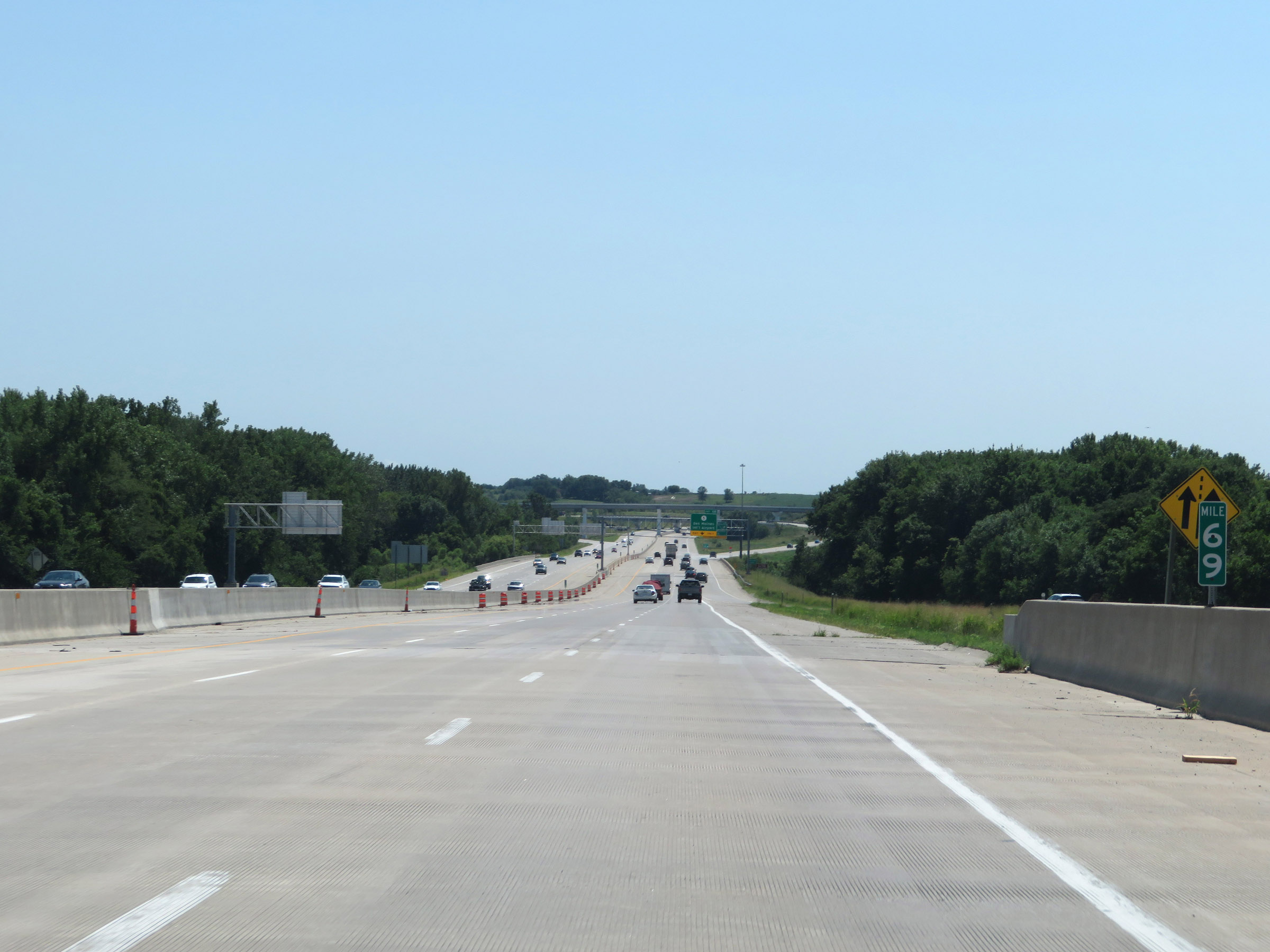 Interstate 35 South at Exit 69: Grand Ave / DMACC West Campus (Photo taken 8/8/20). |