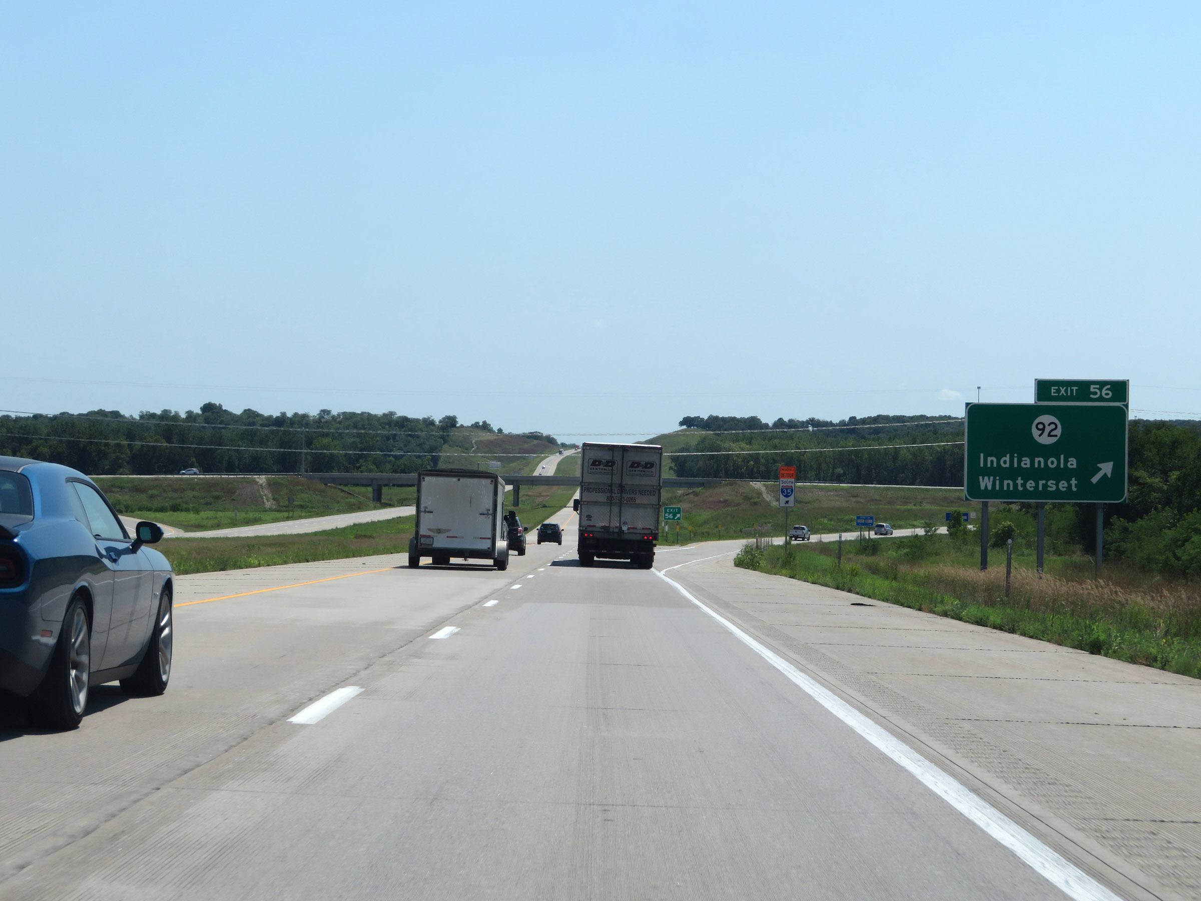 Interstate 35 South at Exit 56: IA 92 - Indianola / Winterset (Photo taken 8/8/20). |