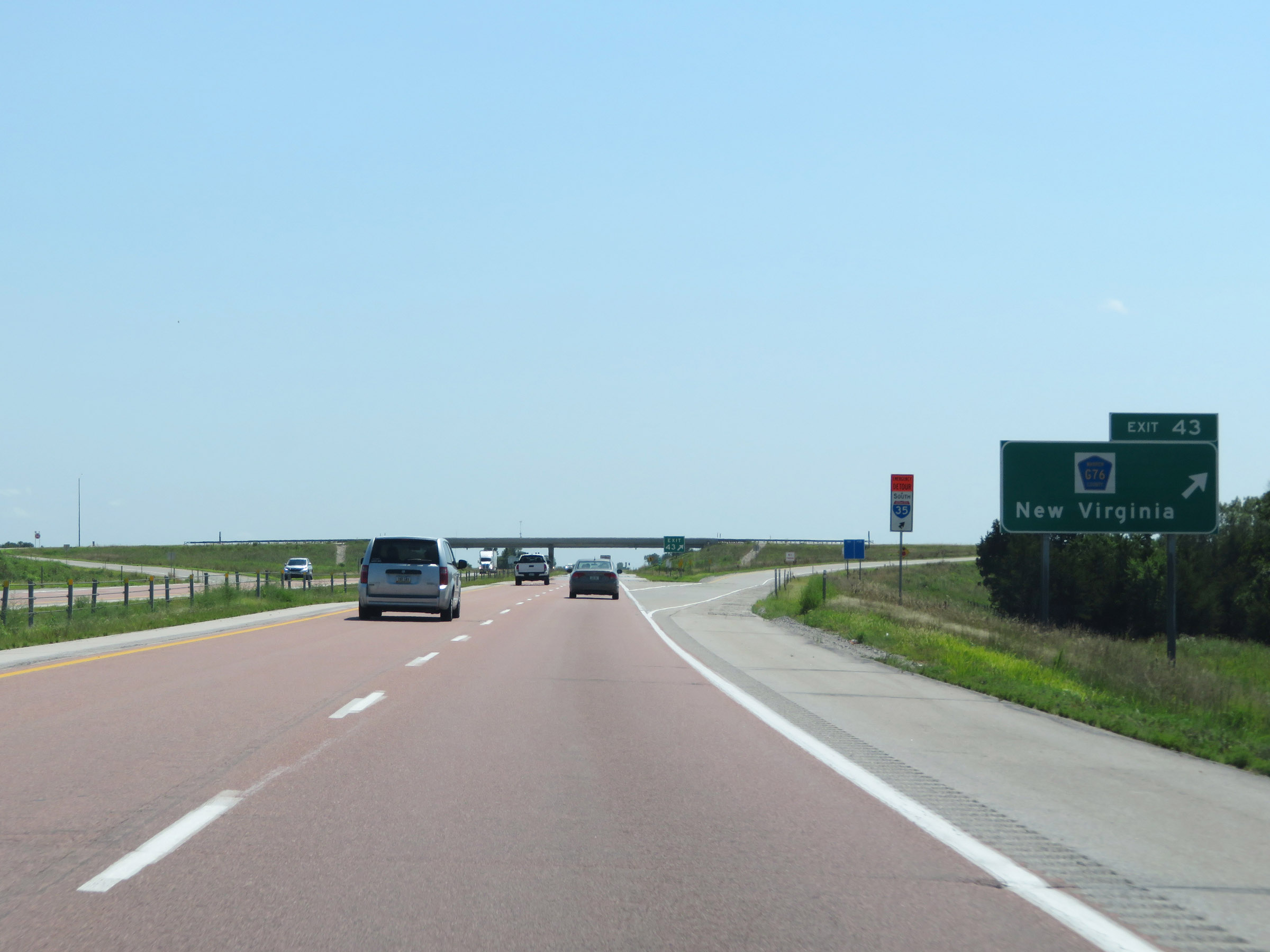 Interstate 35 South at Exit 43: CR G76 - New Virginia (Photo taken 8/8/20). |