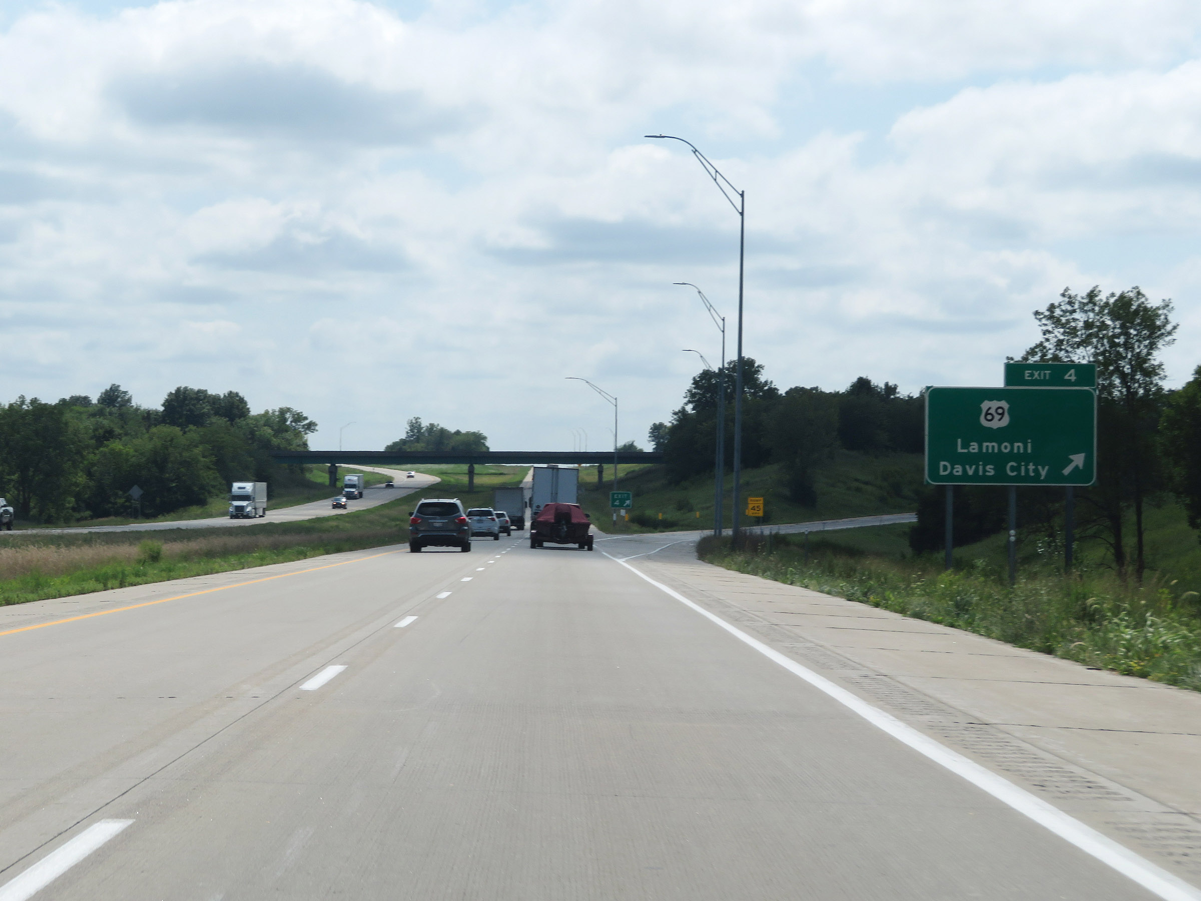 Interstate 35 South at Exit 4: US 69 - Lamoni / Davis City (Photo taken 8/8/20). |