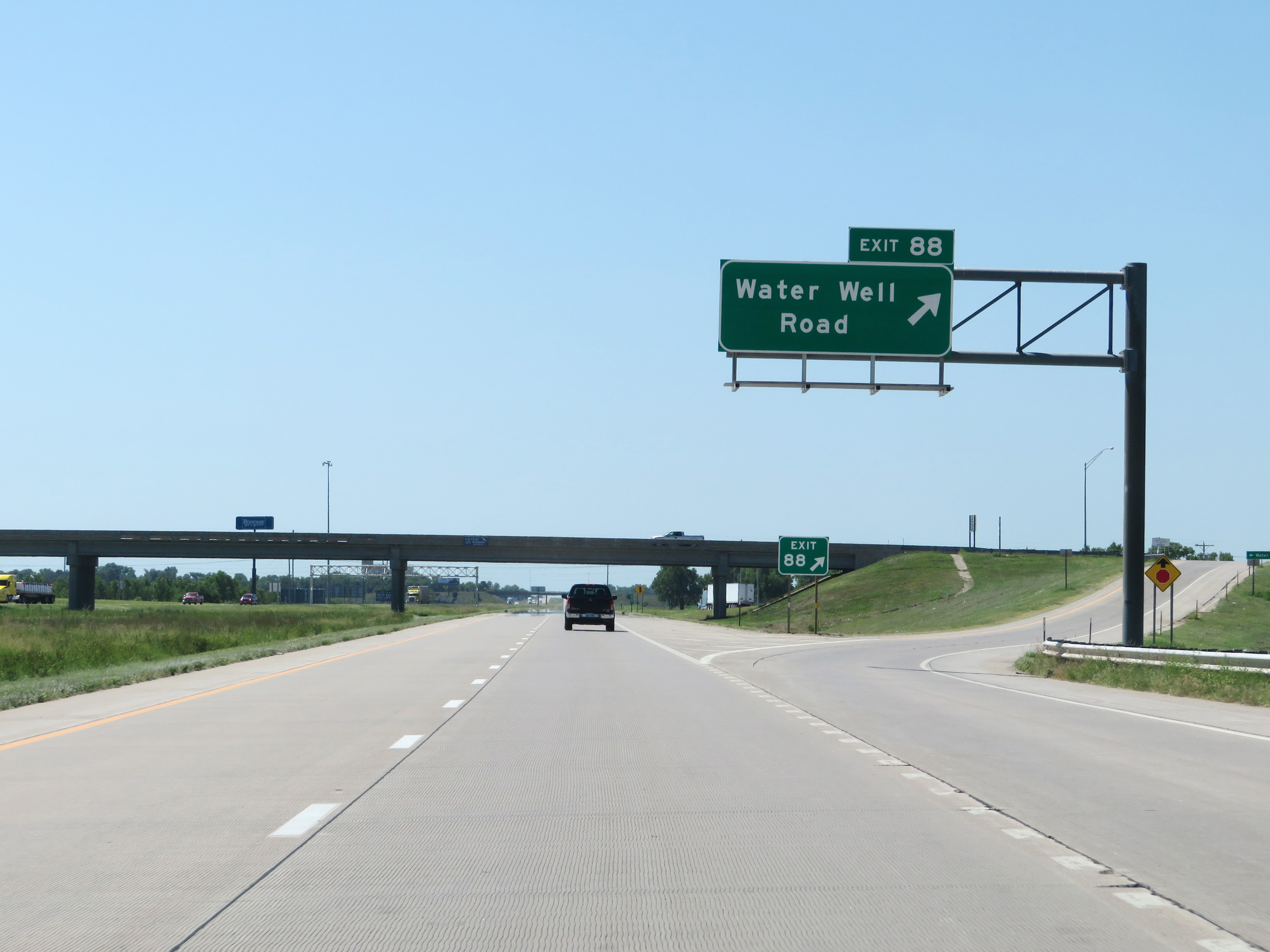Interstate 135 South at Exit 88: Water Well Road (Photo taken 8/11/20). |