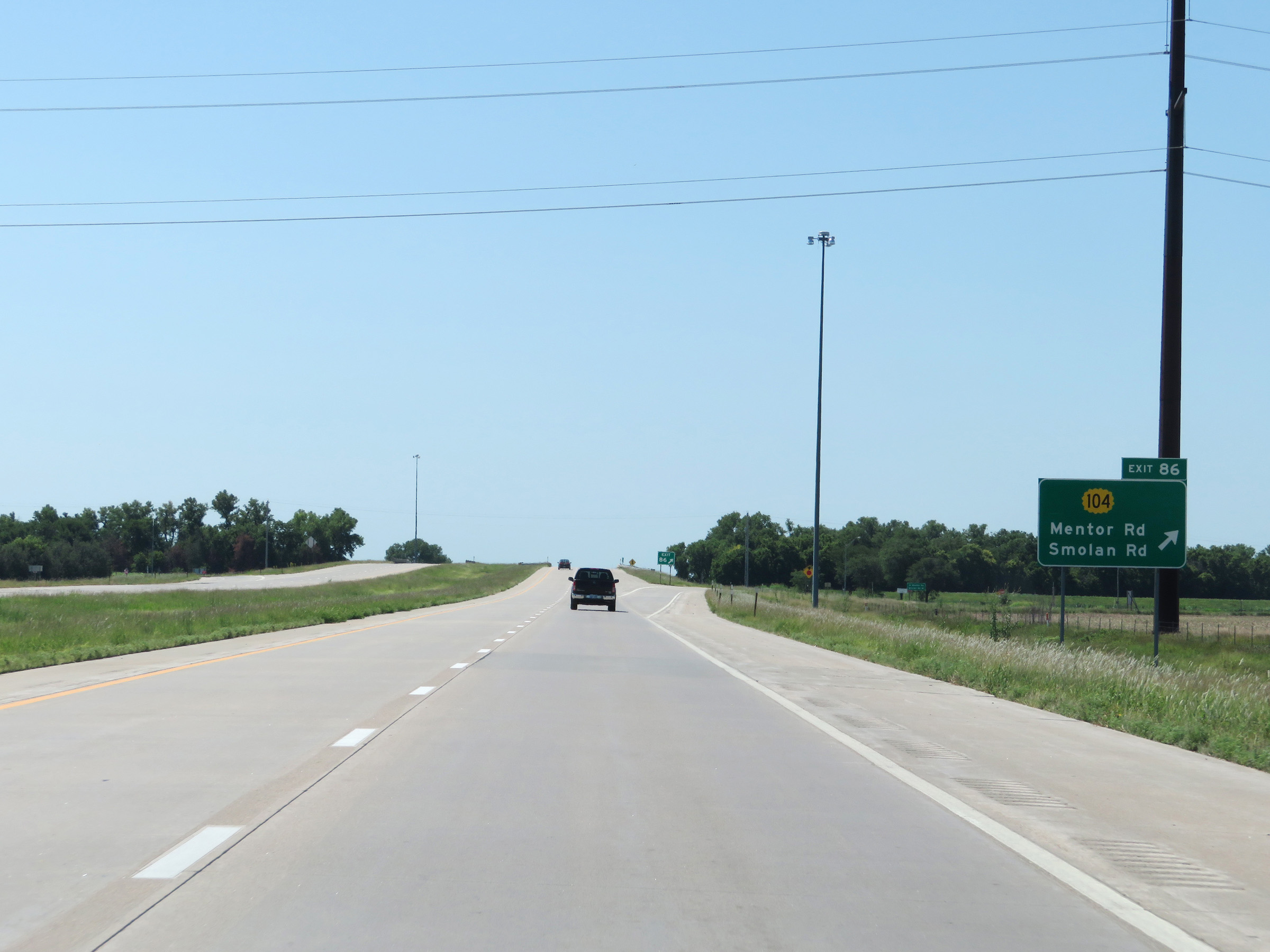 Interstate 135 South at Exit 86: K-104 - Mentor Rd / Smolan Rd (Photo taken 8/11/20). |