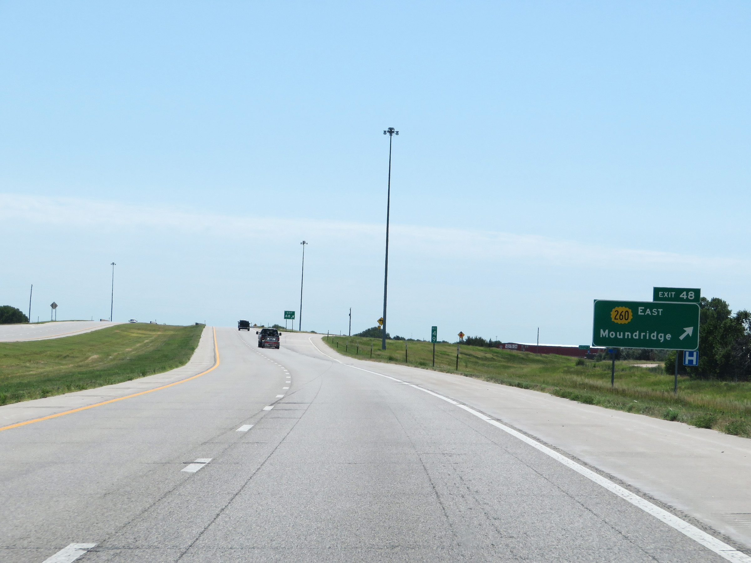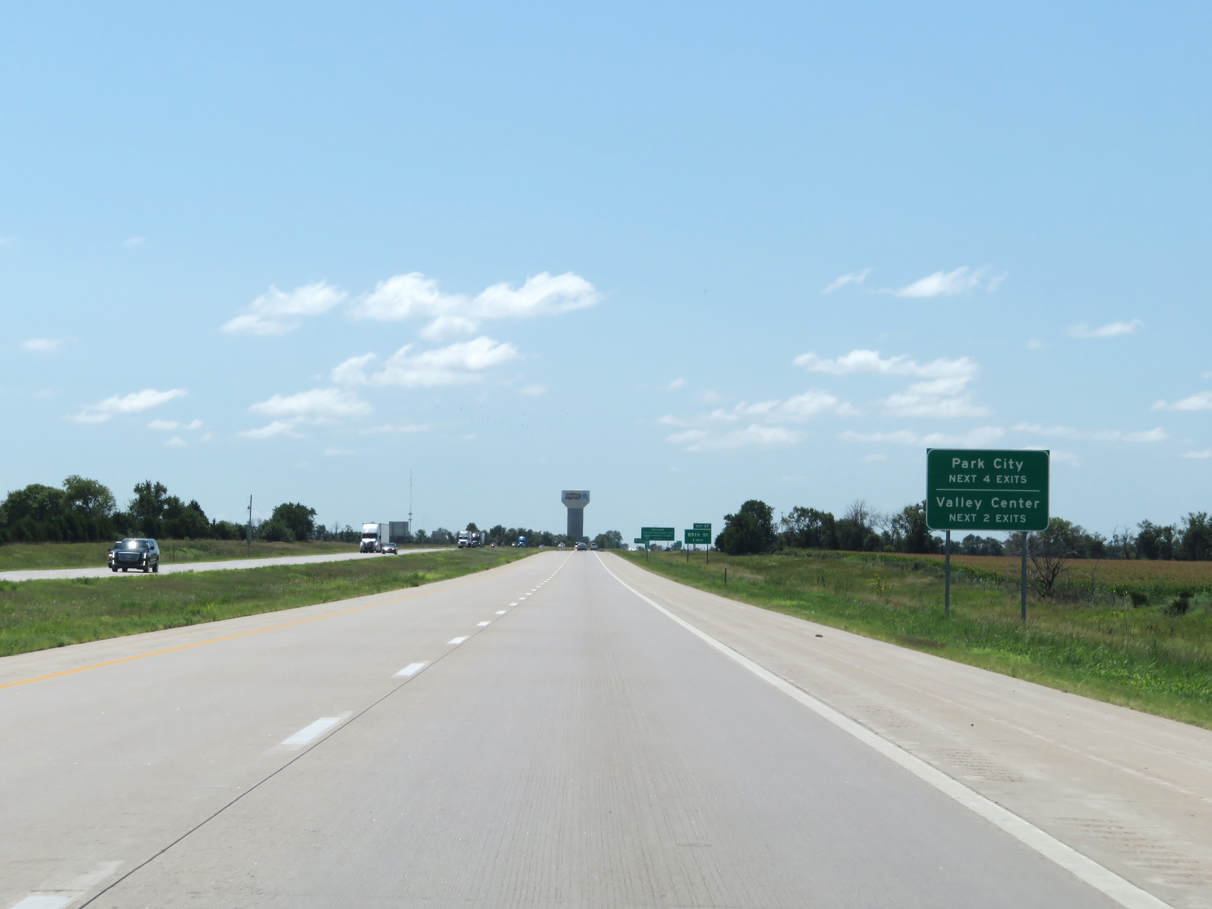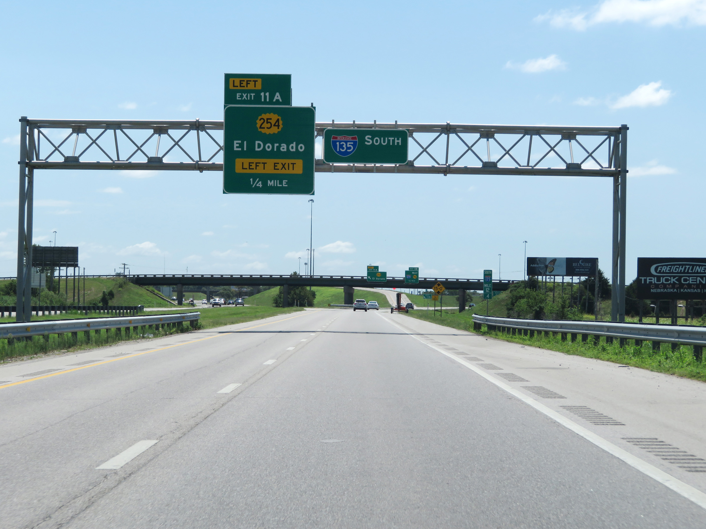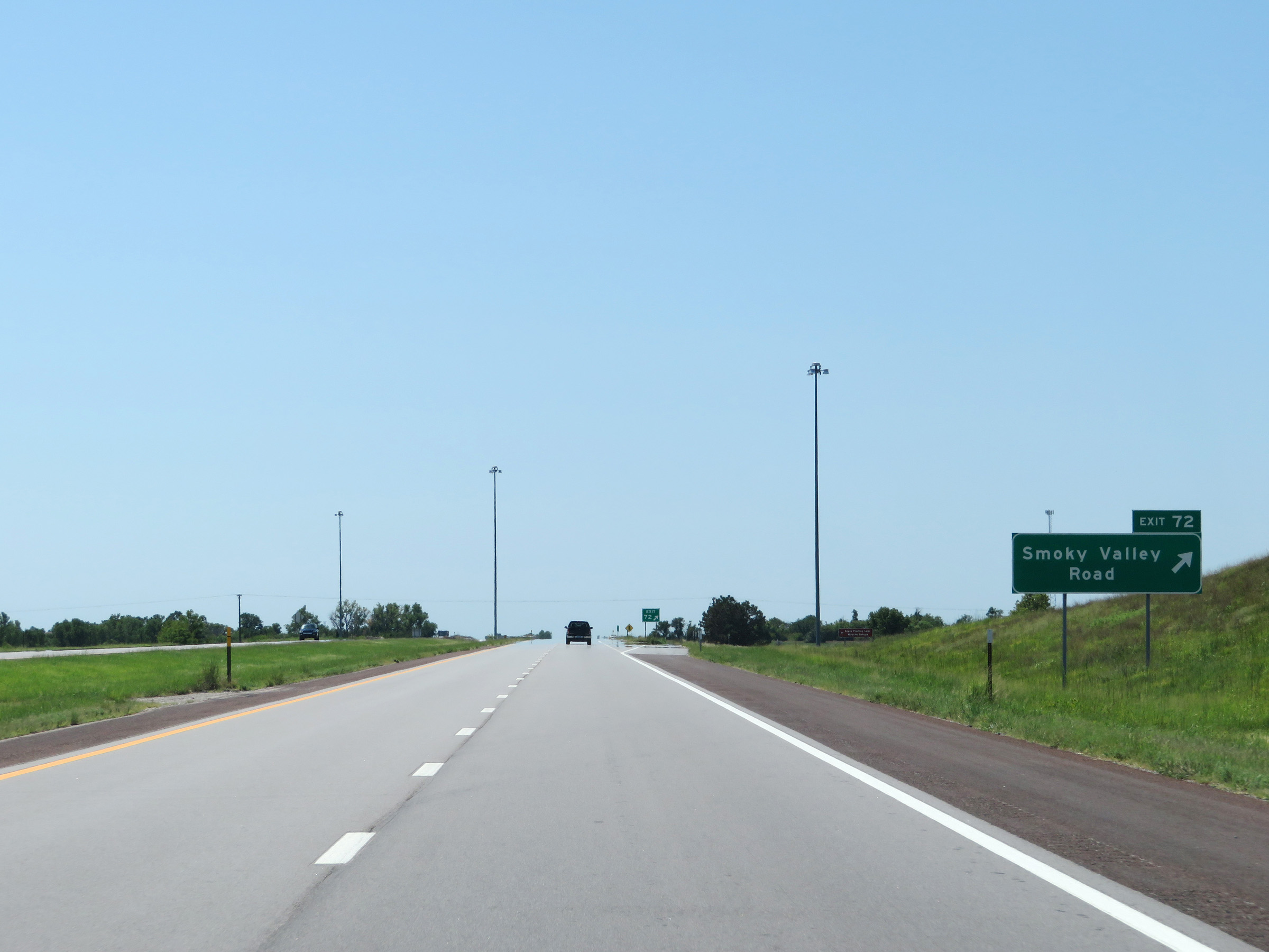 Interstate 135 South at Exit 72: Smoky Valley Road (Photo taken 8/11/20). |