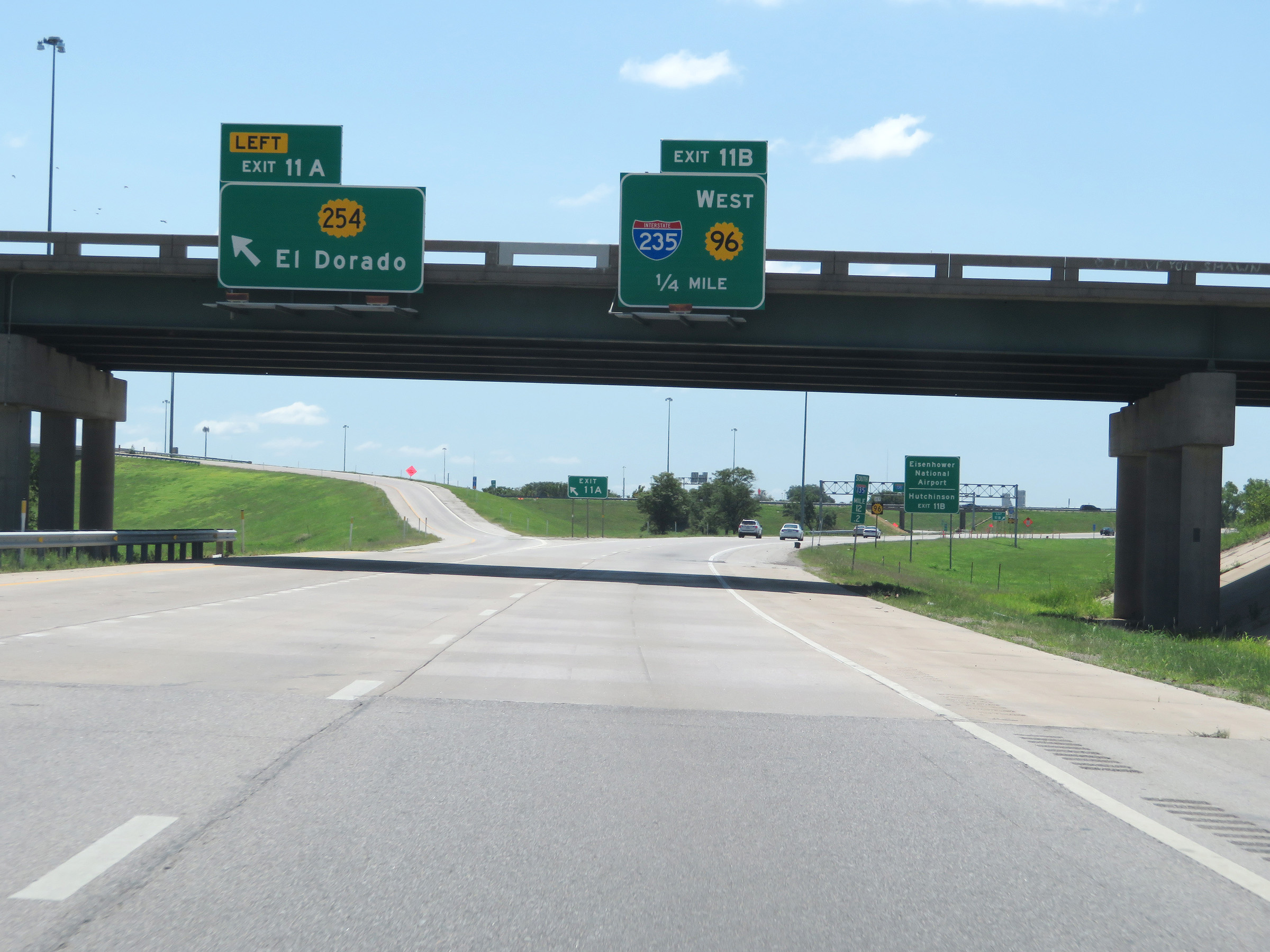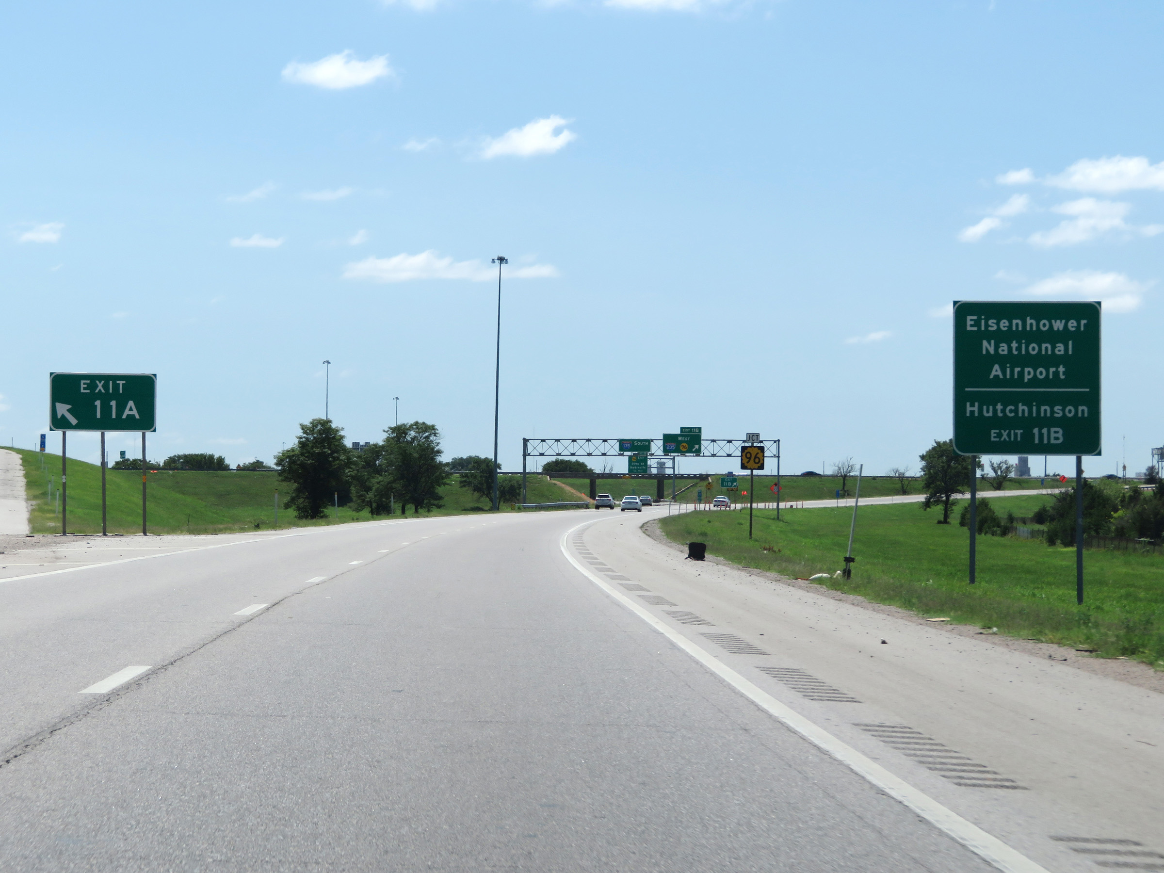 Interstate 135 South at Exit 95B: Interstate 70 West - Hays (Photo taken 8/11/20). |
