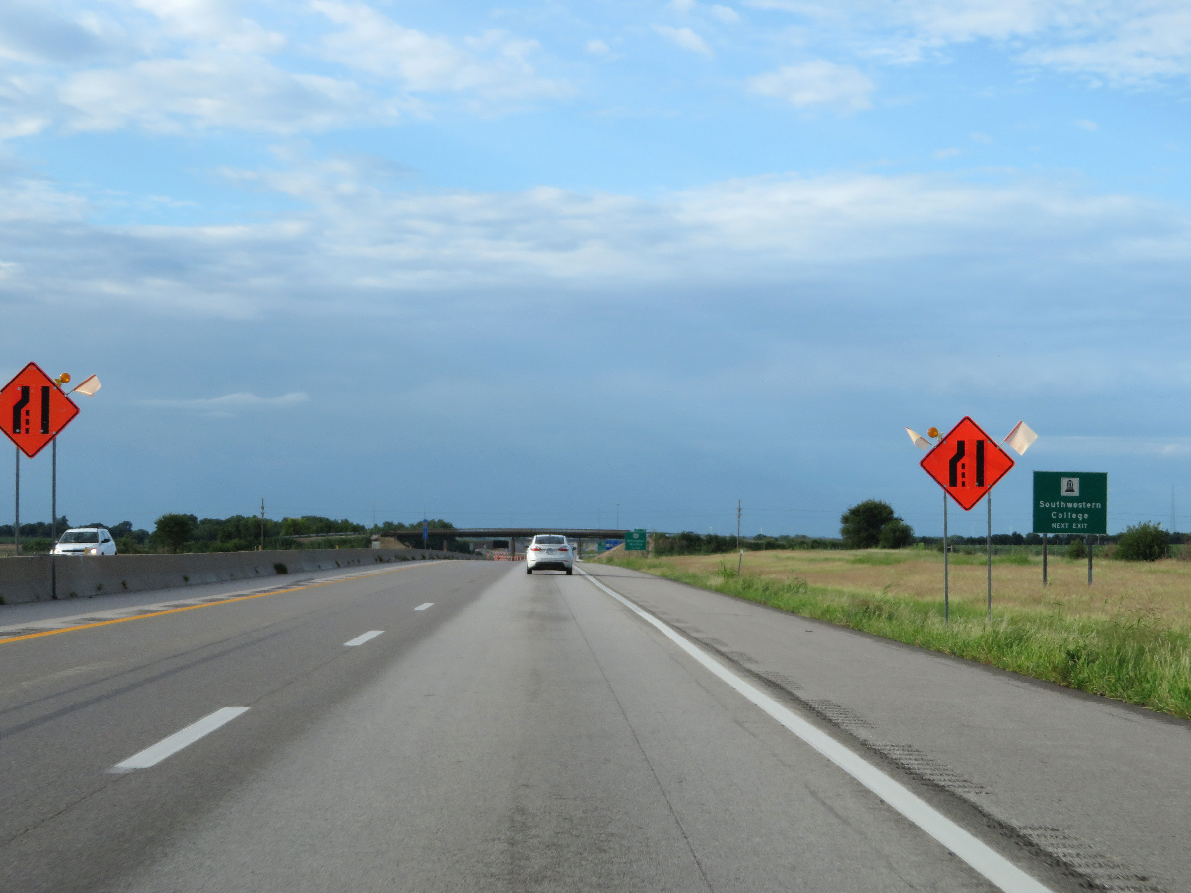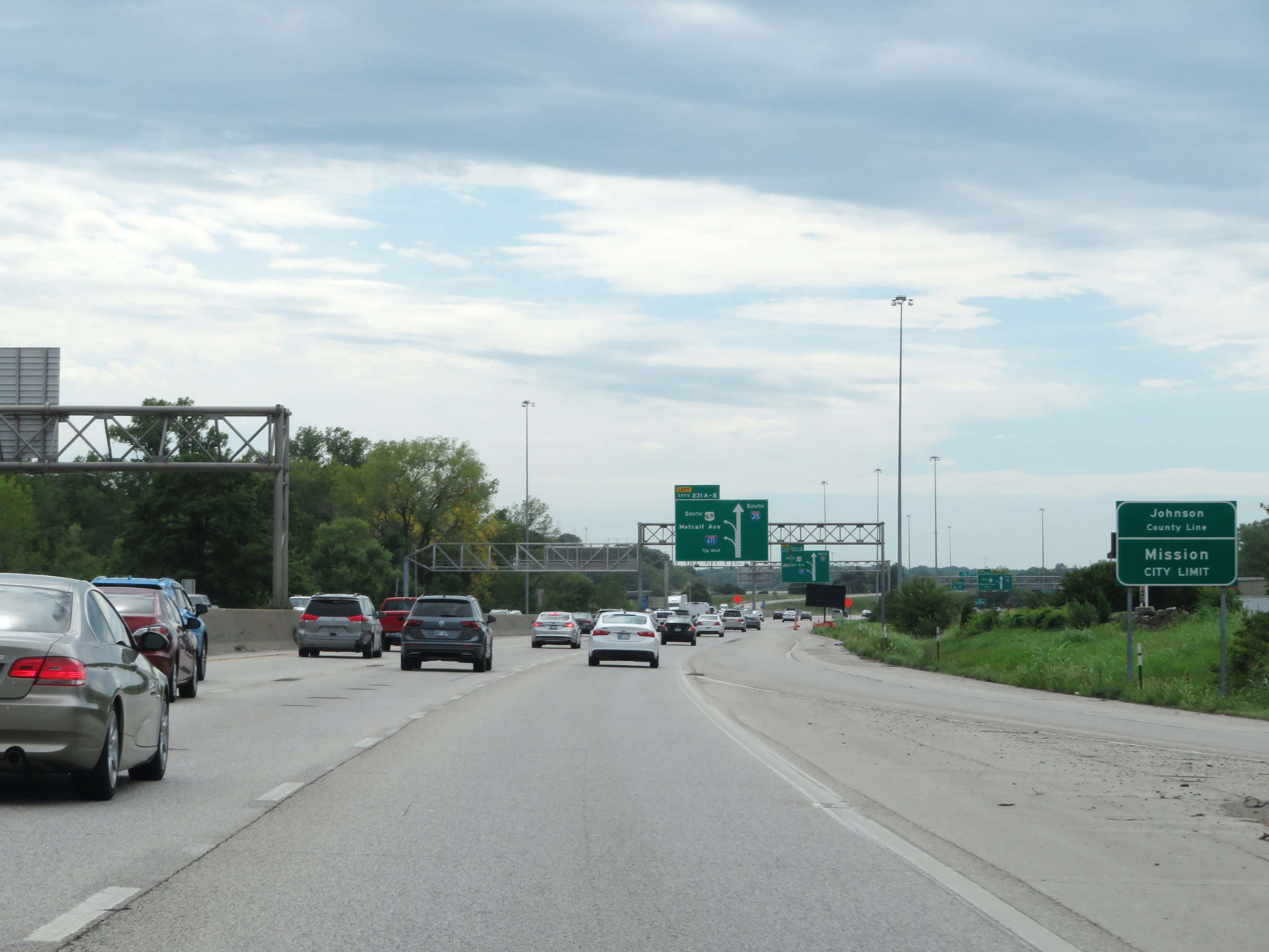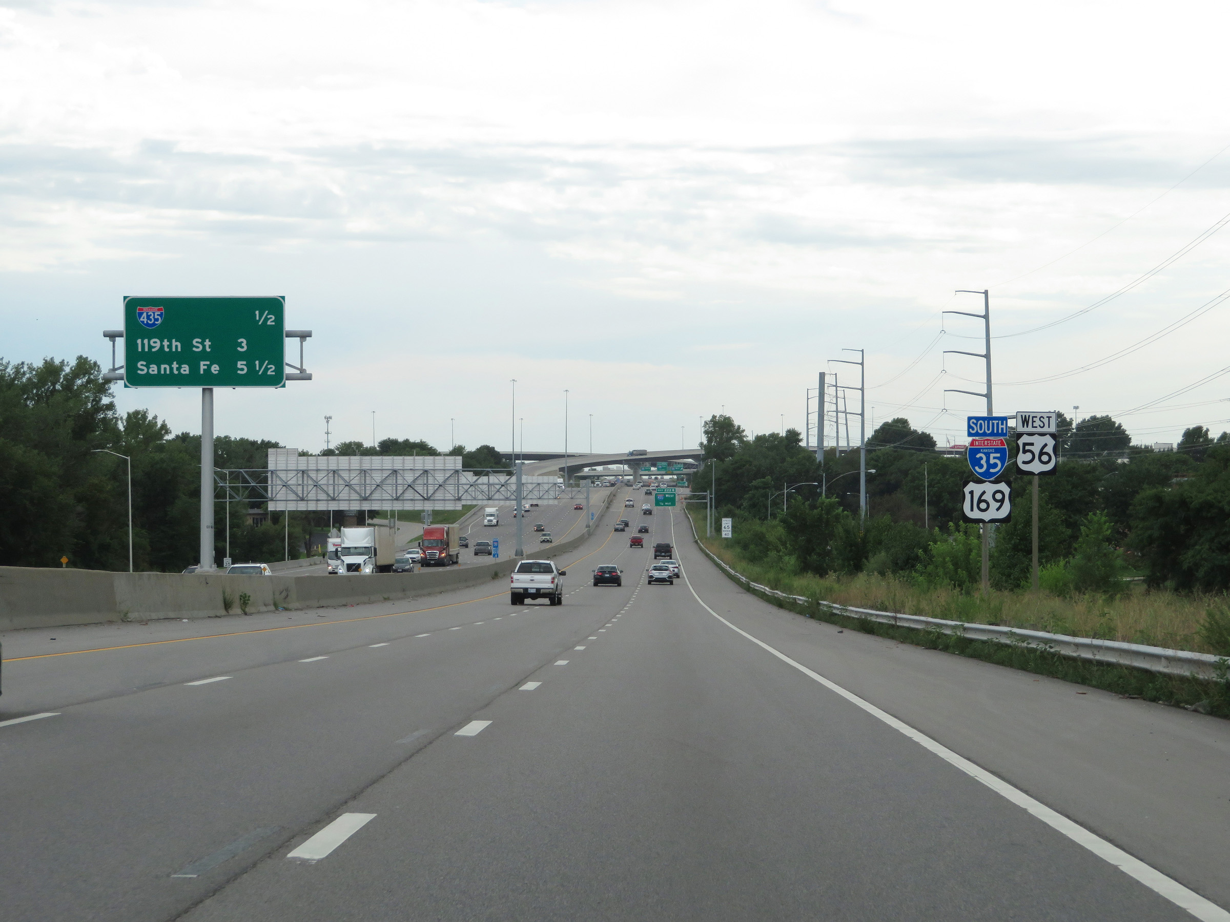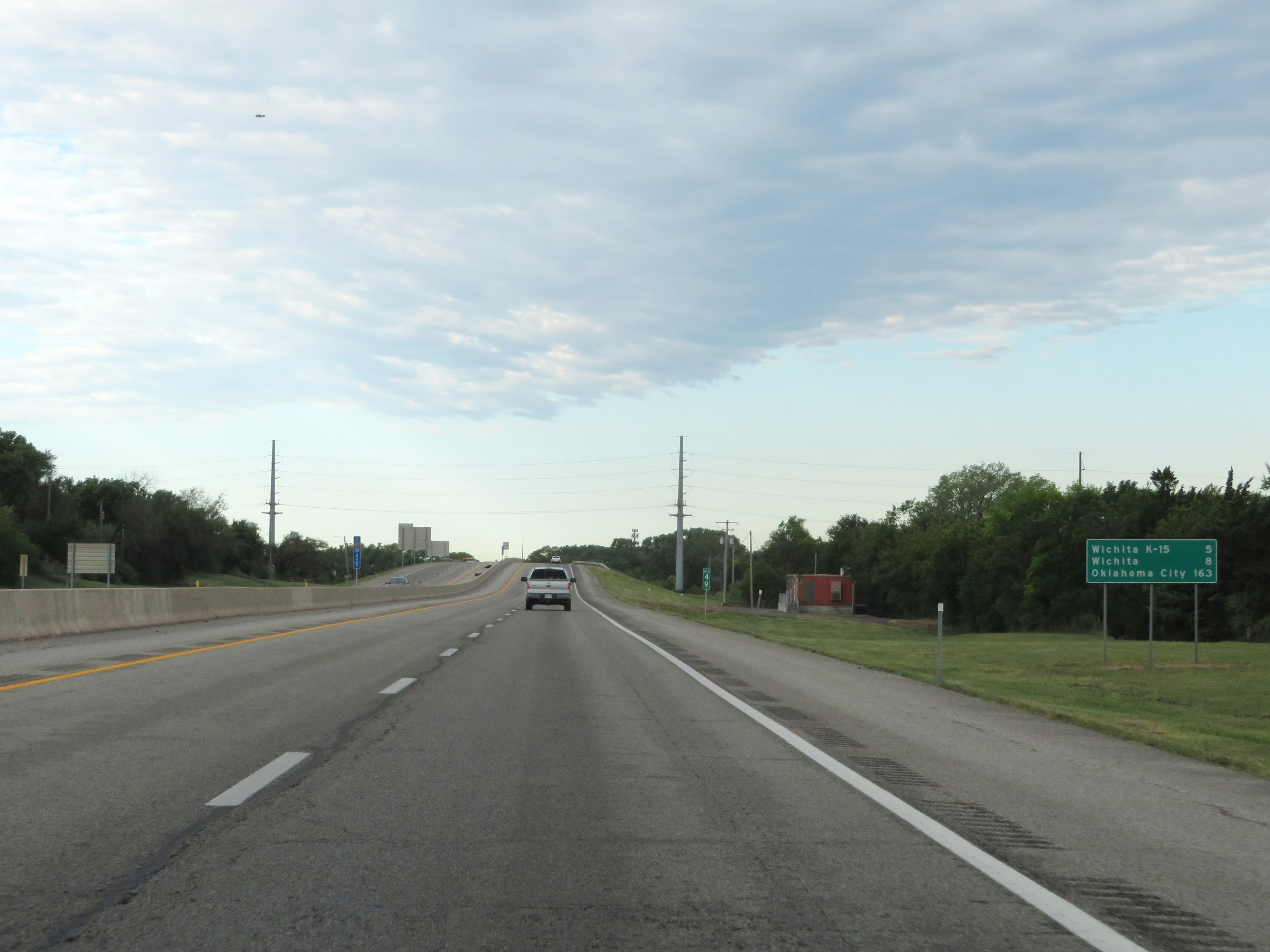 Interstate 35 South at mile marker 127, as it begins to approach the toll plaza for the Kansas Turnpike. (Photo taken 8/10/20). |