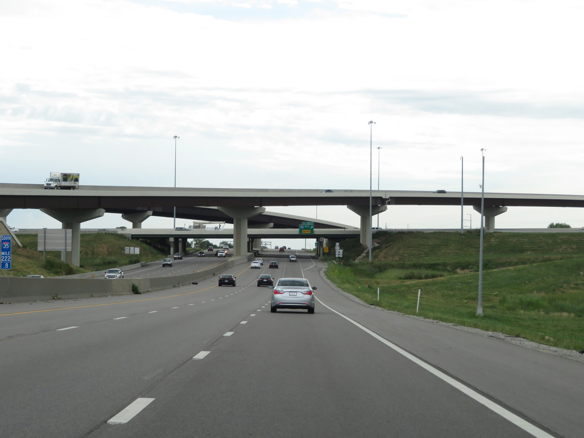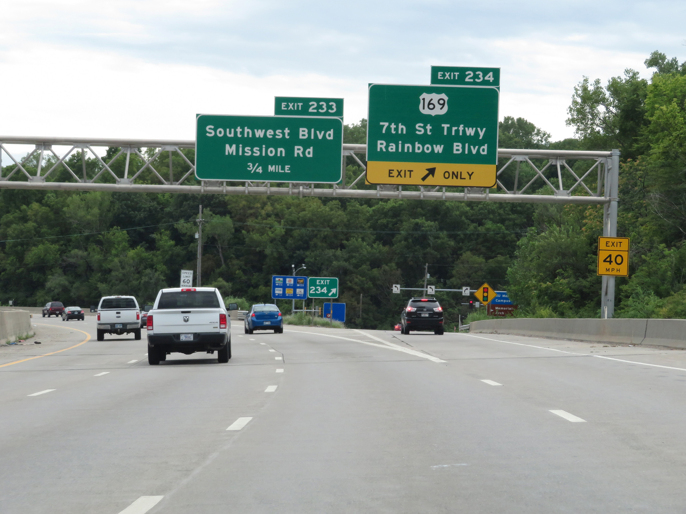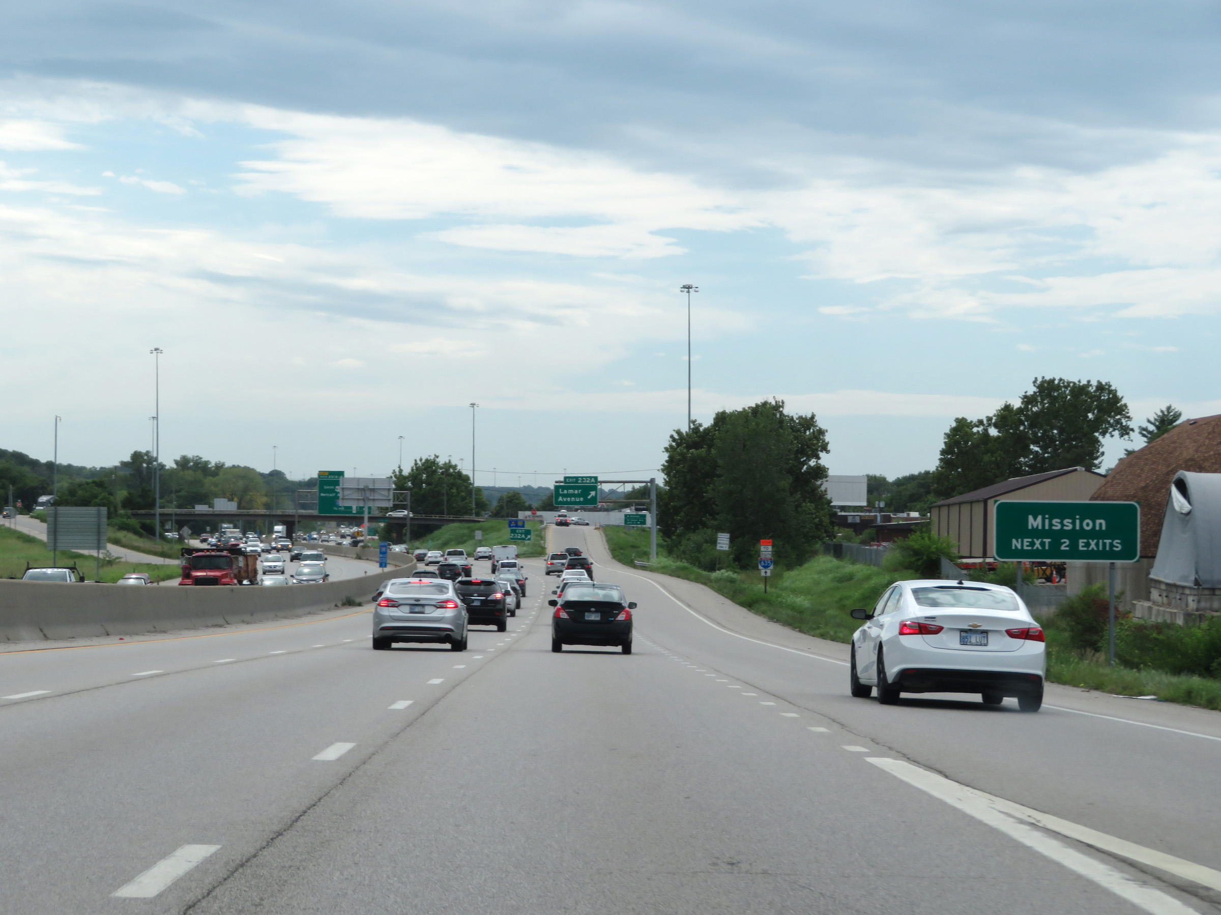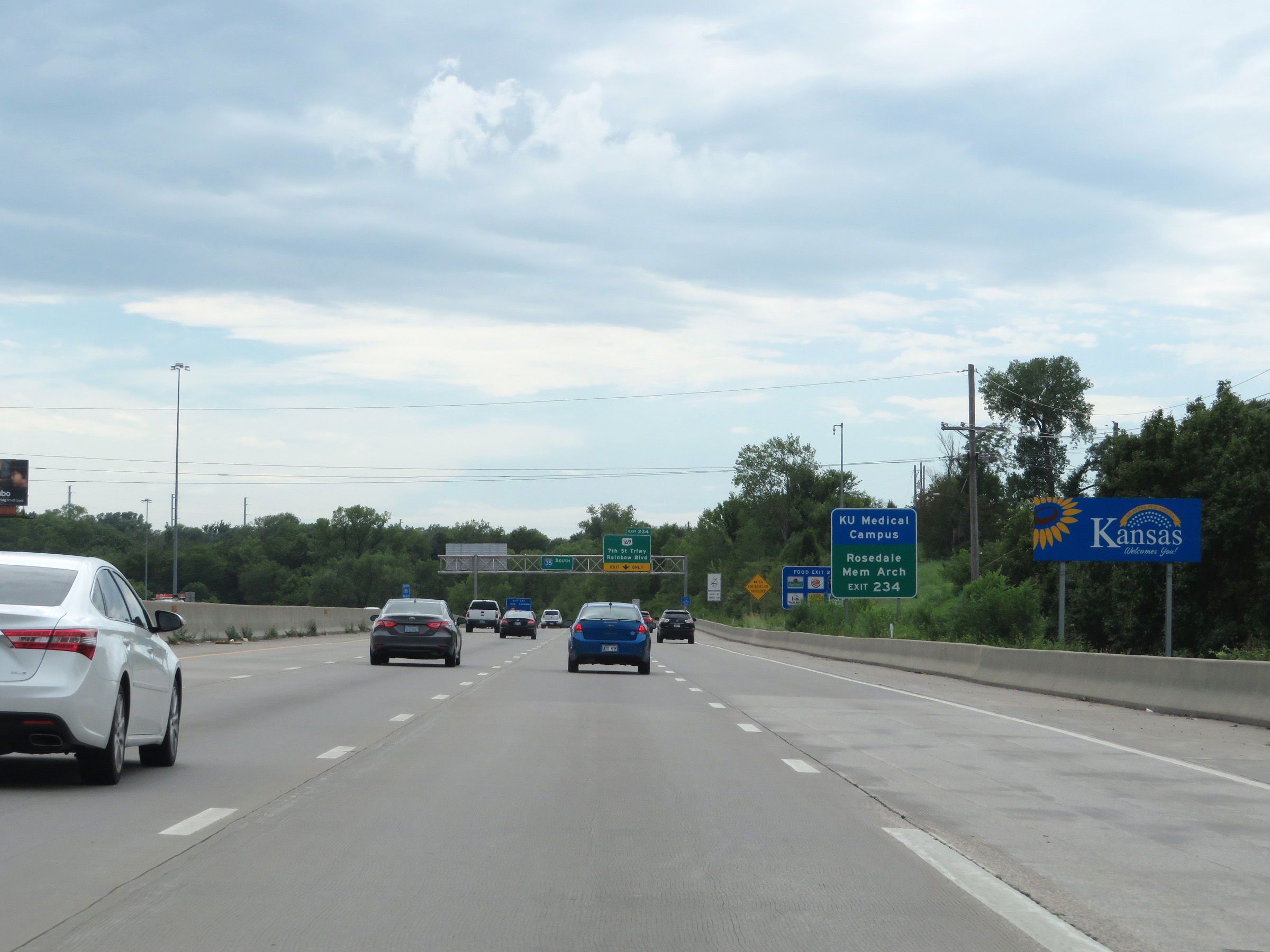 Interstate 35 South at mile marker 127, as it begins to approach the toll plaza for the Kansas Turnpike. (Photo taken 8/10/20). |